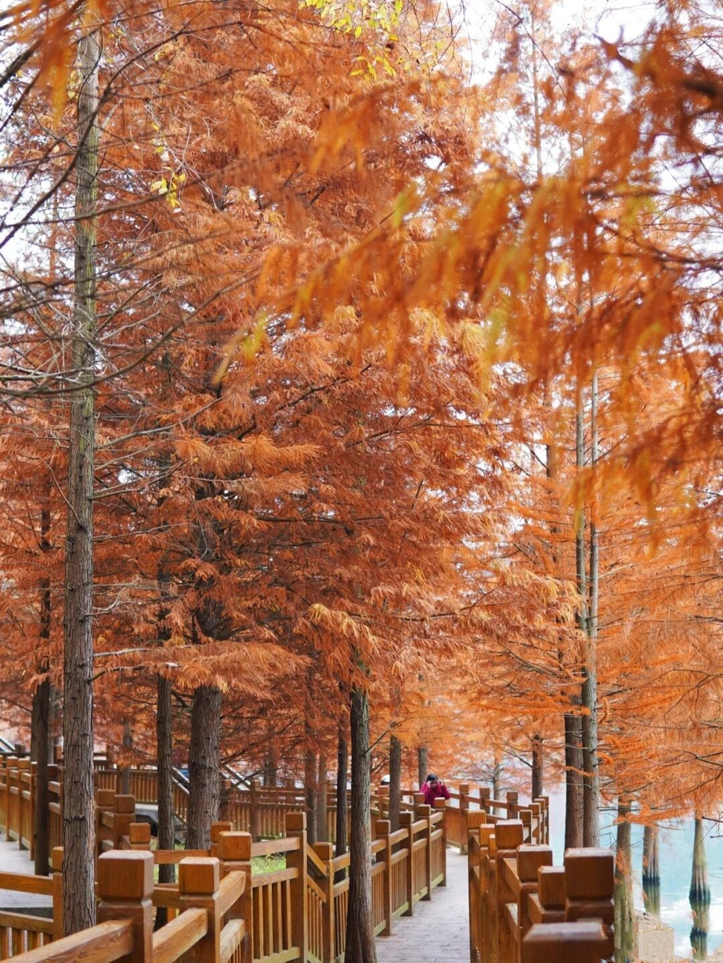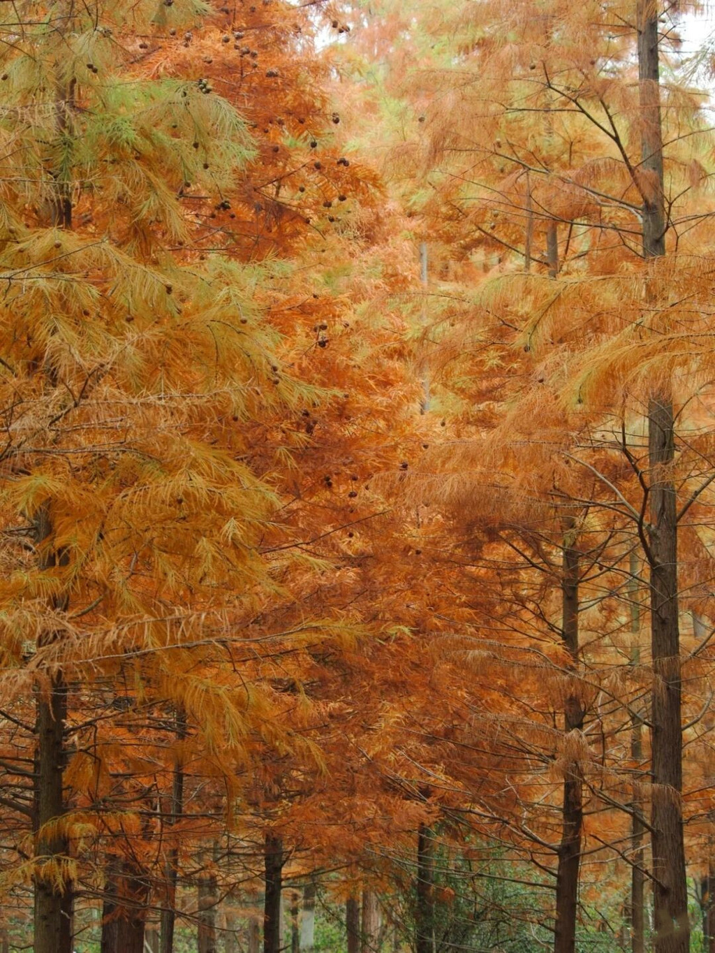 经过了一个冬天的浸染,春天的水杉带着缤纷的色彩;