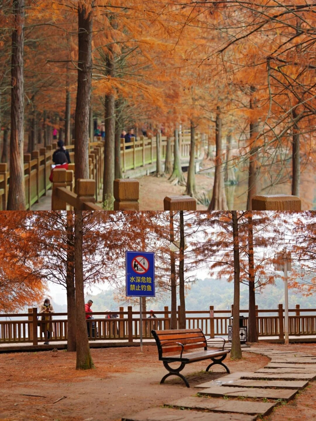 德阳东湖山公园内的水杉林栽植面积超级大,约有5000余平方米,光是水杉、落羽杉和池杉三个品种共1000余株,其中以水杉为主;