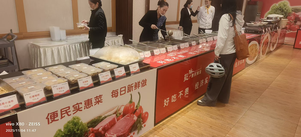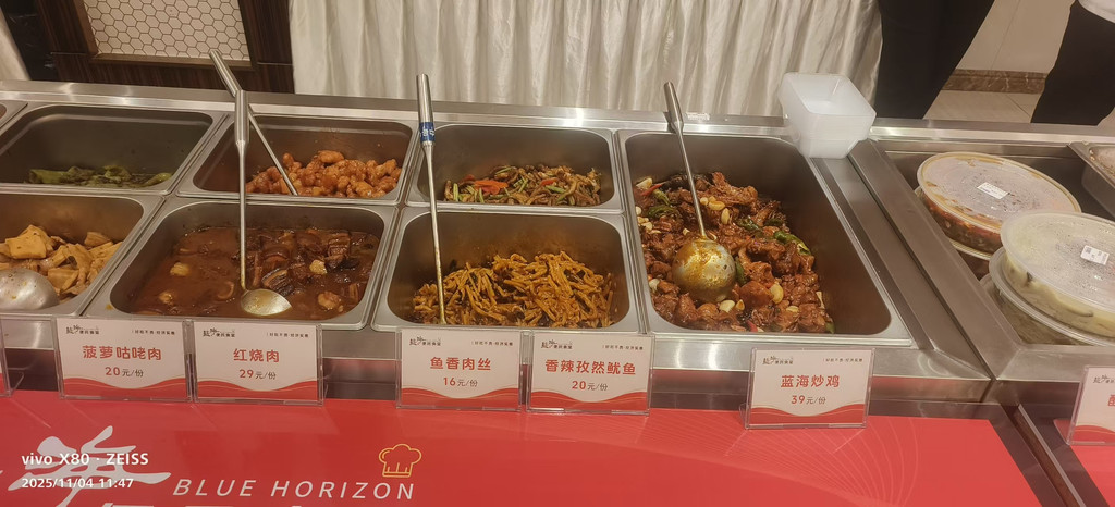 这里的菜品种类丰富多样,但最让人垂涎欲滴的当属那一道道香气四溢的招牌菜了。尤其是那道炖肘子,简直是食堂的王牌菜品。炖肘子被精心地摆放在大盘子里,色泽红亮,肘子肉被炖得软糯可口,轻轻一咬,肉就从骨头上脱落下来,入口即化的口感让人陶醉。浓郁的汤汁浸润着每一丝肉质,香辣中带着醇厚的肉香,那味道在舌尖上跳跃、绽放,让人欲罢不能。据说这炖肘子是食堂师傅们精心研制的秘方,经过长时间的炖煮,让各种调料的味道充分融合在一起,才能做出这般美味的佳肴。而且,这家食堂的价格十分便宜。对于我们学生来说,不需要父母花费太多的钱就能享受到如此美味的饭菜。在这个物价飞涨的时代,能有这样物美价廉的食堂实在是难得。更值得一提的是,蓝海便民食堂还紧跟时代的潮流,开展了线上套餐优惠活动。只需要在手机上轻轻一点,就能预订到心仪的套餐,既方便又快捷。无论是上班族匆忙赶来用餐,还是老人家不想出门动手做饭,都可以通过这种方式轻松享受到美味。