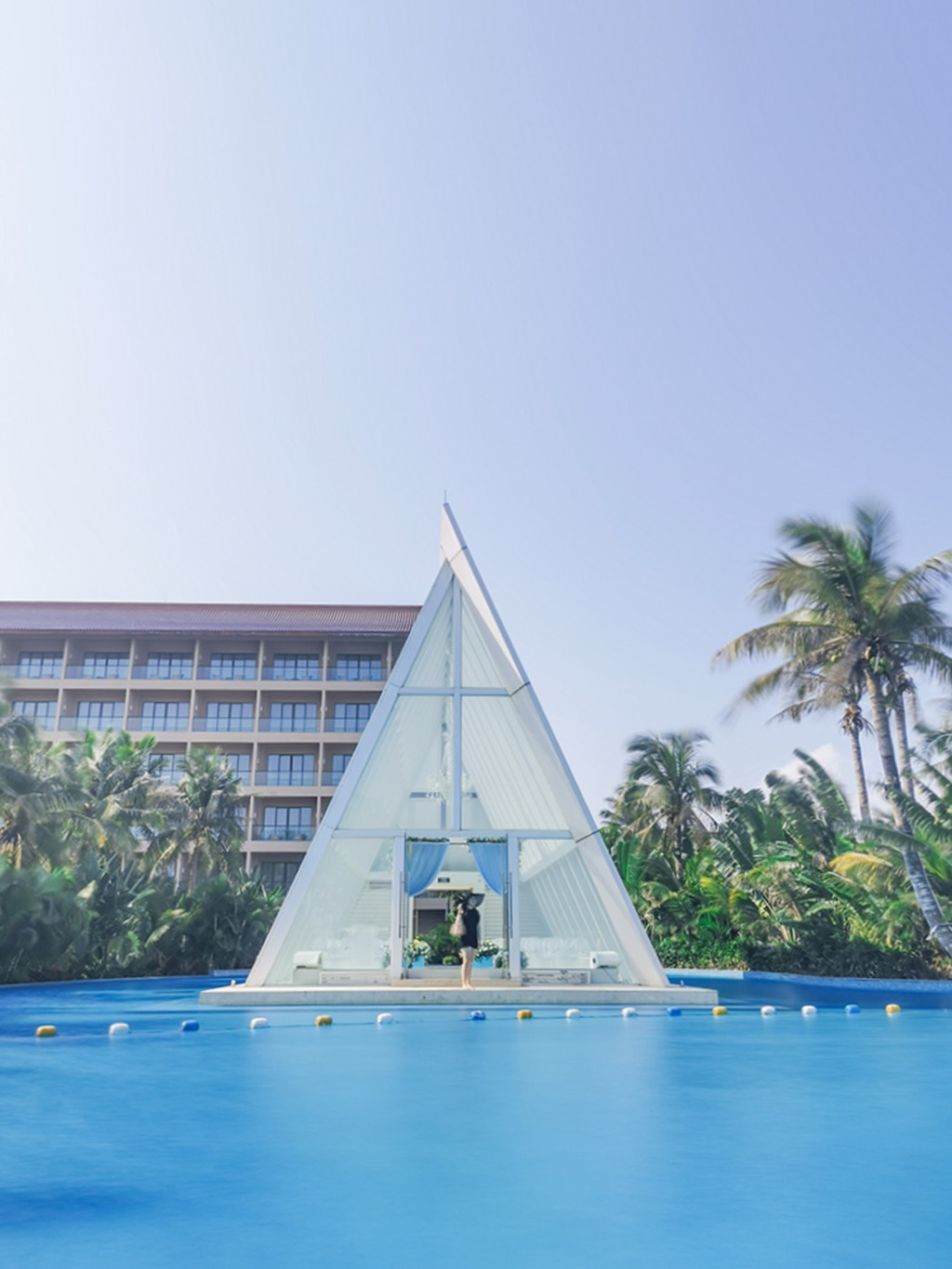 在酒店海岸沿线建了一座十分具有 东南亚 风情的教堂,完美的三角形设计,美轮美奂,是梦想中的婚礼殿堂。海边总是充满着无穷的吸引力,戏水堆沙,肆意玩耍,这里正是不可多得的高人气网红打卡地。