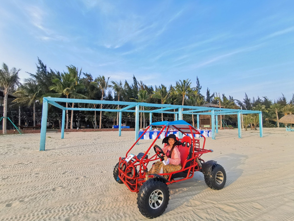 热闹的海边尽是我们的欢声笑语还有那些摩托的引擎声,第一次玩沙滩摩托很有意思,大胆的尝试开启这一刻的快乐心情,摩托在渔船的遗迹中穿梭,阳光金灿灿的,让你心动不已。