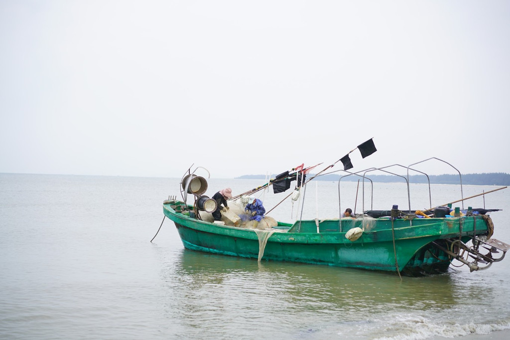 看着渔民从船上来来回回的往岸上带上一箱箱的鱼,一切都如此新奇有趣。沙滩上围着许多人,有渔民、鱼客、巡海人,很是热闹。很多都赶来买新鲜的鱼,偶尔还有虾,我们期待着中午的海鲜大餐,因为这里必定是最鲜美的所在。