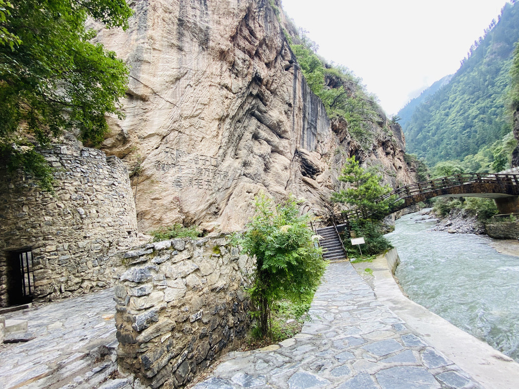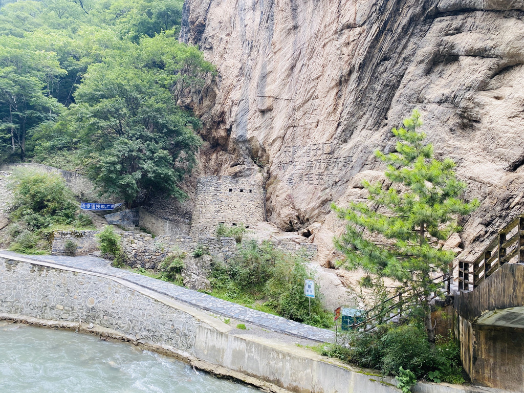 8、 腊子口抗战纪念碑(免费,建议游览时间0.5小时):腊子口景区是个免费景区,在345国道上,一路过去山势险要,还会经过很多落石路段。主要看点是两个,一个就是纪念碑,很多人到这里打个卡拍个照就走了,其实往前百米左右就是当年真正发生战事的地方,一个小型碉堡遗迹,有步行栈道可过石桥。因为景区在国道上,且河谷狭窄,没有正规停车场,只能在路边停车。