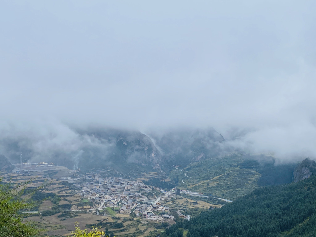 别看扎尕那海拔高,位置却很像个碗,加上不太缺水,云山雾罩的时候很多,要想一次赶上落日、星空、日出简直需要人品大爆发。此行比较完美的是赶上了落日,星空就别想了,晚上7、8点钟的时候屋顶就像盖了条厚棉被,次日清晨也是云雾缭绕,笼盖四野,所幸清晨的扎尕那有些类似禾木的晨雾美景,炊烟伴着晨雾,静谧美好。