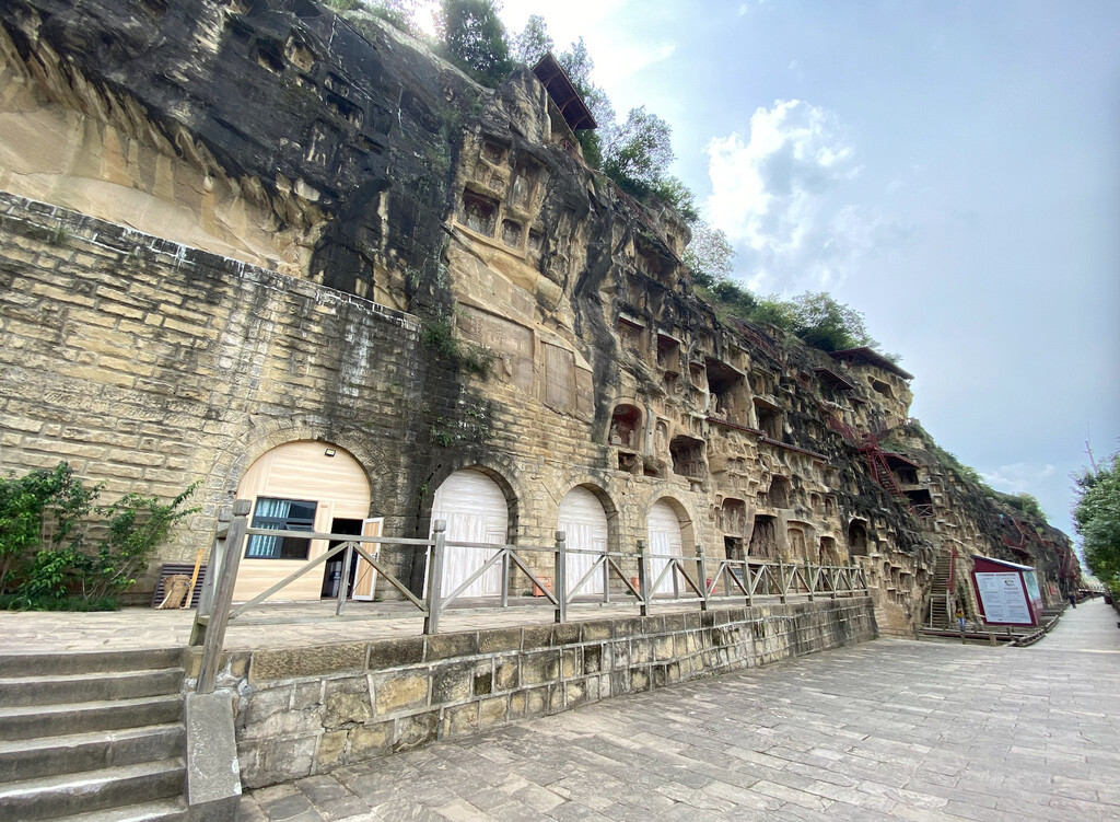 3、皇泽寺(门票50元/人,建议游览时长2-3小时):在广元市区,依乌龙山面嘉陵江而建,风光绝佳。内有停车场,节假日车位可能会比较紧张。进了大门要走很长一段才到真正的皇泽寺正门。主要有一代女皇相关的历史陈列之类的,还有一小部分石刻。景区内设施不错,游览路线规划的不错,就是很多景点没有简介,陈列品和遗迹的历史典故,如果不请讲解员就完全云里雾里,走马观花。