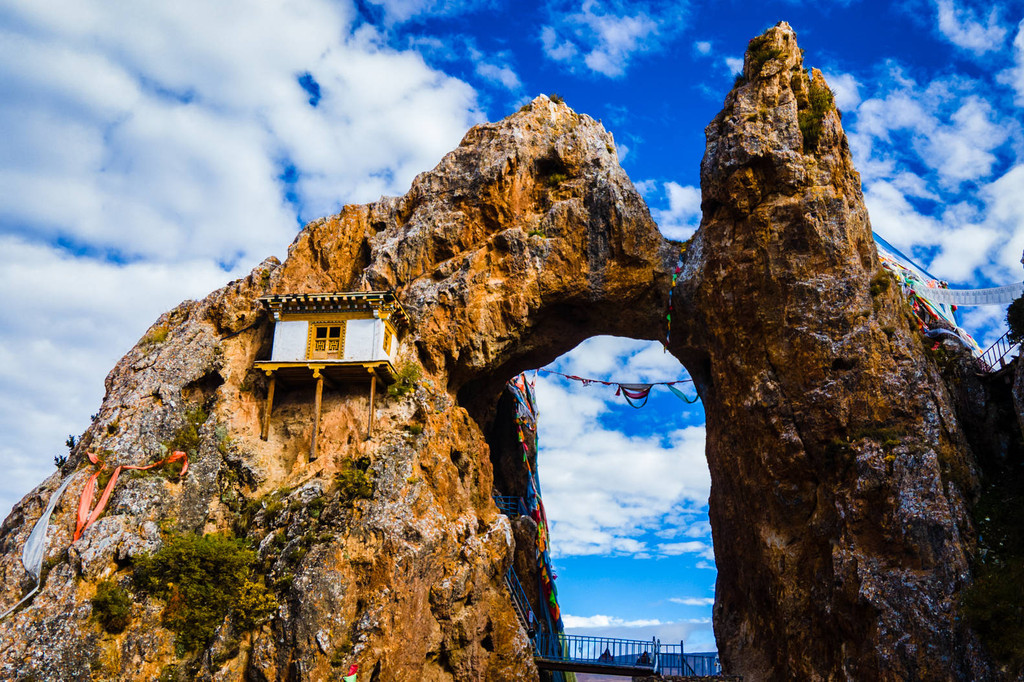 六座山峰的第三峰最奇妙,是一个空洞的山,传说空洞是大鹏鸟穿山而过留下的,因为像一面悬空的镜子,可以照见世人之心,照见世间空性,被称为“见性峰”。也成为孜珠寺必打卡的网红点。