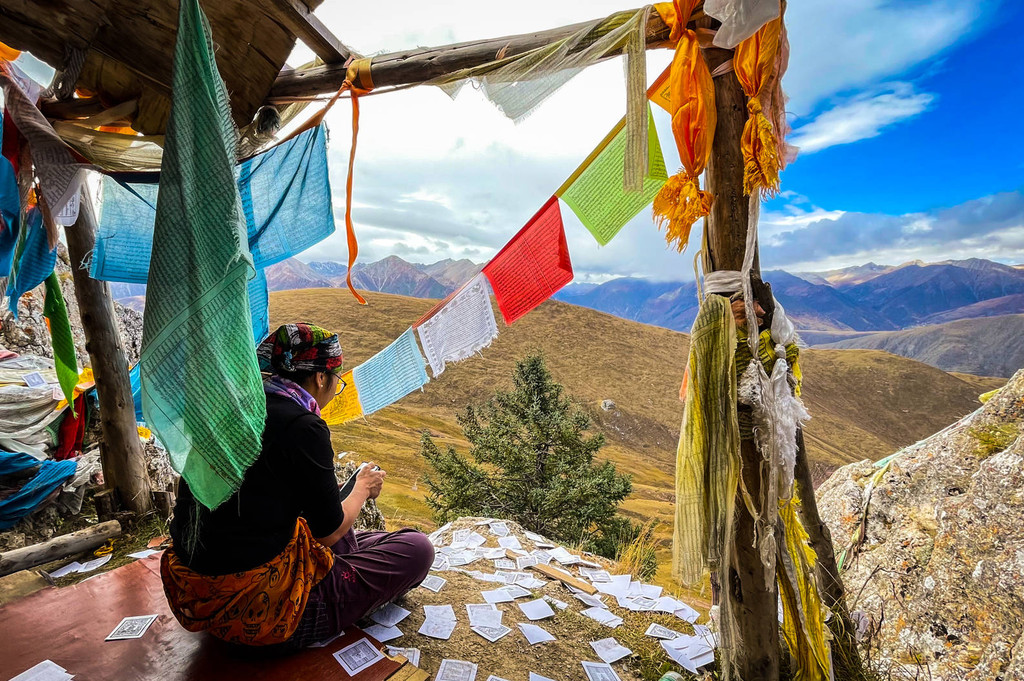 从这个禅房望出去,整个孜珠寺尽收眼底。三千年来,孜珠寺高山险峻,远离世俗,自然条件极为艰苦,但无论经历灾荒、法难、战争还是动乱,僧人们与云天冥想,与山川对诵,一直保持着纯净的修法氛围。