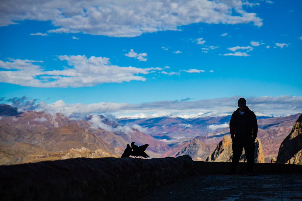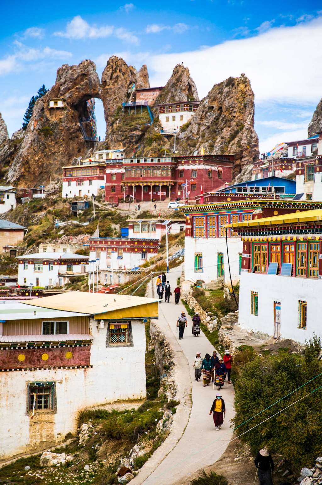曾无意中见过一张孜珠寺的照片,星罗密布的寺院、僧舍在峭壁上悬空生成,像电影《魔戒》中的场景,似乎不是这个世间的一种存在,心里便生起了一个向往,也不知有多久了。把车开到海拔4800米的时候,终于震撼的一幕出现了。