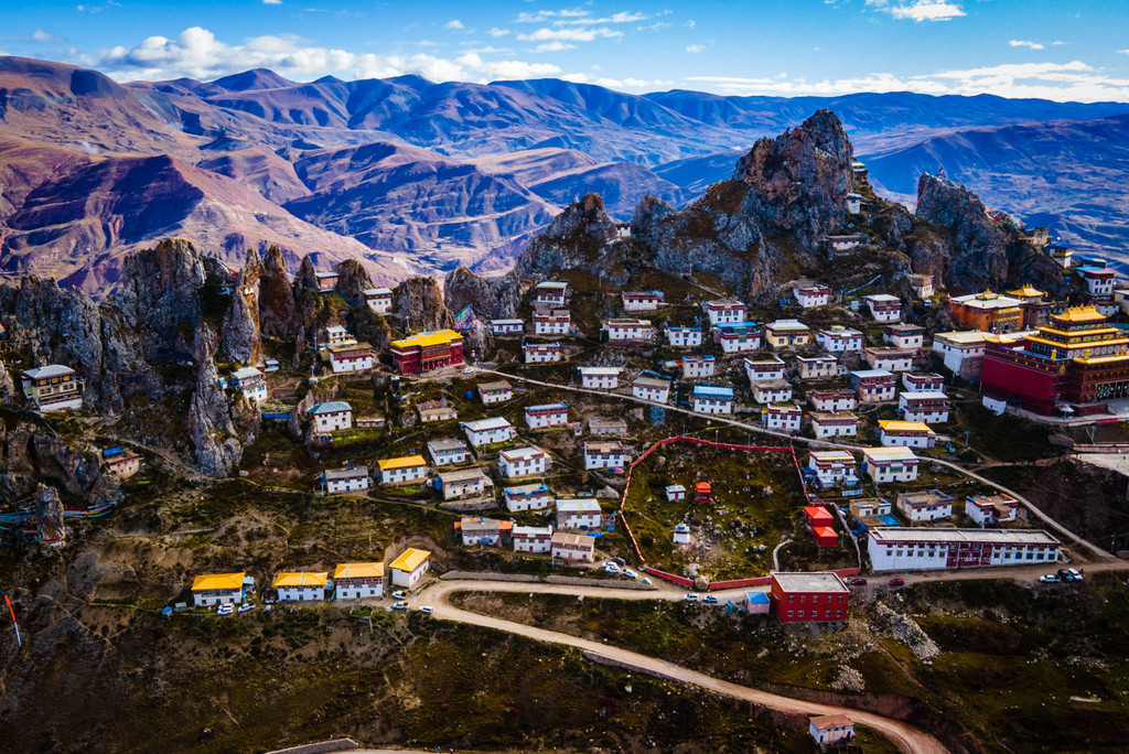 孜珠寺,初听误以为“蜘蛛寺”,上了山才知道,孜珠指的是丁青的六座4800米的褐红色山峰,西藏海拔最高的寺院之一孜珠寺,建在群峰的南坡,俯瞰经堂、僧舍密密麻麻,像一幅色彩斑斓的油画,又像一张巨大的网。