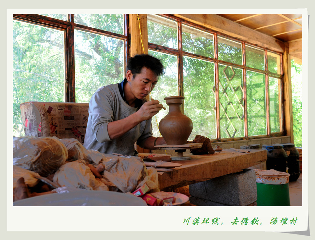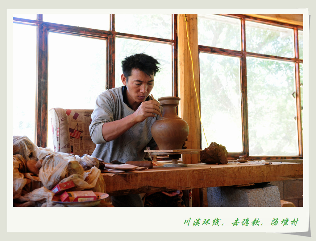离开纳帕海,第一站就是尼西的汤堆村。因为想看看汤堆村黑土陶的生产工艺,我们专程路过这里。在村里遇见了落桑,和他聊了他和黑土陶的故事,被他的黑土陶作品深深吸引,很庆幸来这里看看。