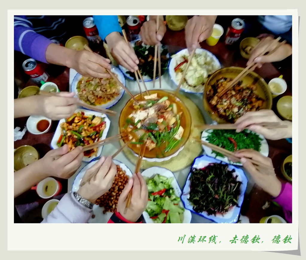 之所以想早点赶往德钦,是因为摄友熊今天过生日。今天行程已过半,每天除了风景,最让人期待的就是每顿晚餐了,四斤多重一整条鱼烹制而成的各种口味水煮鱼,当地各式各样见都没见过的土菜,再加上百喝不厌的啤酒,每顿吃得都很尽兴。