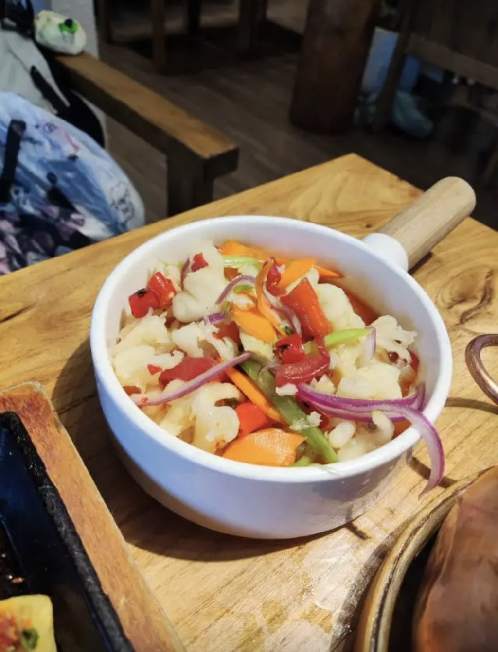但是这次丽江之旅让我觉得最舒服,最舒心的还是位于丽江束河古镇的一家花园餐厅真的是非常舒服,一个四合院里面种满了鲜花餐厅一共两层,一楼是有歌手驻唱,二楼,是观景的,可以看到丽江的蓝天白云,餐厅的是装修是非常欧洲风的干净舒爽,让人非常舒服,在这里吃美食,真的不仅仅是味蕾上的一个享受,同时呢身心上也是有很好的熏陶,你想想这种意境,坐在花园里面吃美食,听着音乐喝着小酒看着鲜花,这种感觉真的太舒服了!