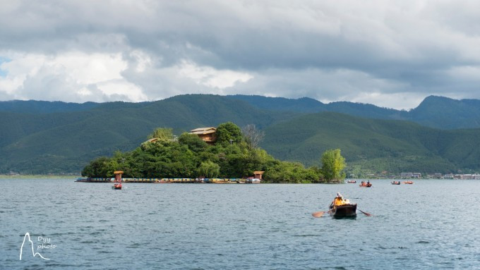 后来我问司机师傅,他说,去里务比岛一般要从大落水出发,但大落水是团队游客最集中的区域,游客多,排队久,乘船60元。乘船抵达里务比岛后,船夫会留给游客20分钟时间,让游客自行登岛,岛上有座喇嘛庙。但是因为游客聚集的多,在旅游旺季常常需要排队一两个小时,而且通常船夫会在划到一半时半强迫游客选择“绕里务比岛一周”,每个人额外多交50元。关于这个信息是否准确,需要亲自去过里务比岛的游客来亲自验证了。