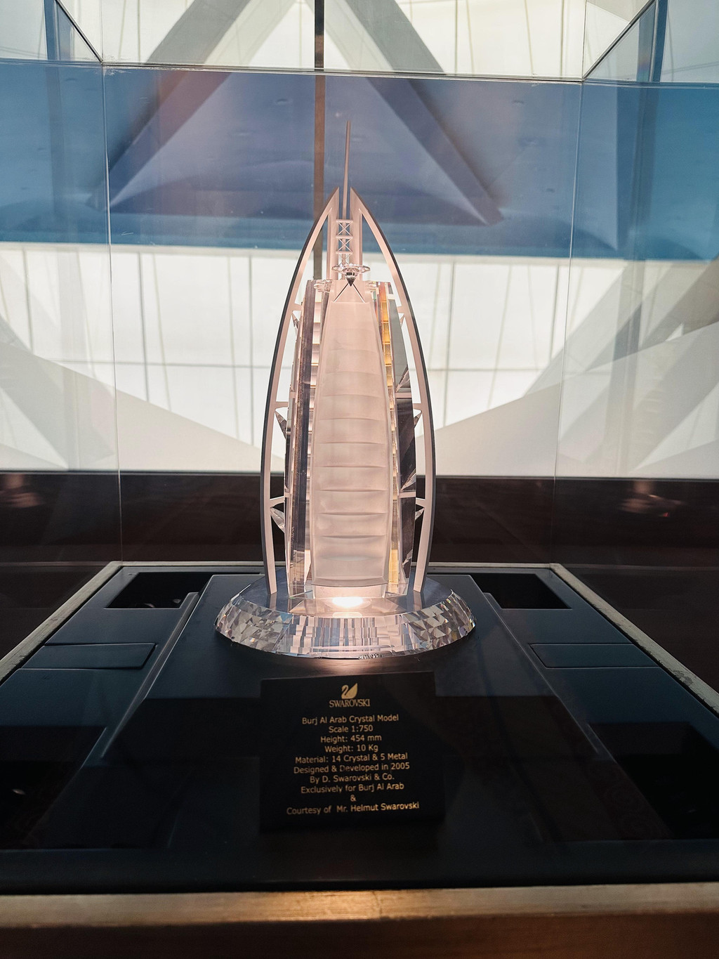 皇家套房门口的帆船酒店施华洛世奇水晶模型。