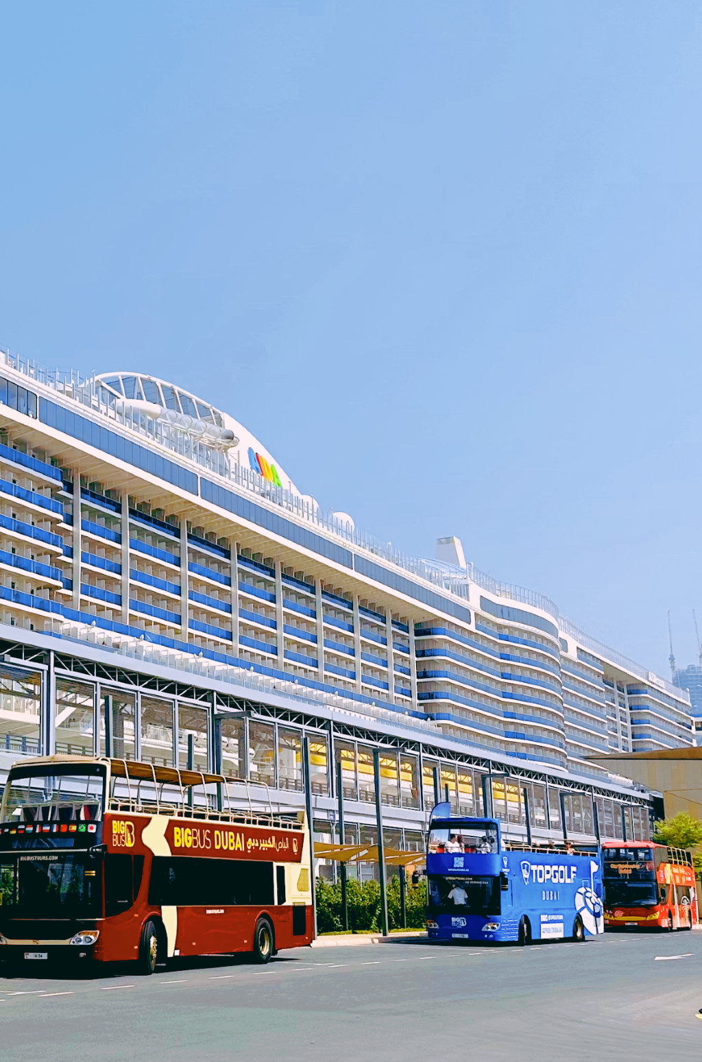 注:其实本来是没有打算坐观光巴士的,因为我们后面要在迪拜租车,巴士经过的地方都会去。但是想想如果一天就这样在船上无所事事也没意思,而且因为没有转换器,(邮轮插座是美标,这次只带了英标的插座)电脑电水壶等都不能使用,邮轮码头的小卖部又断货了,所以一定要到迪拜市区去买个转换器。