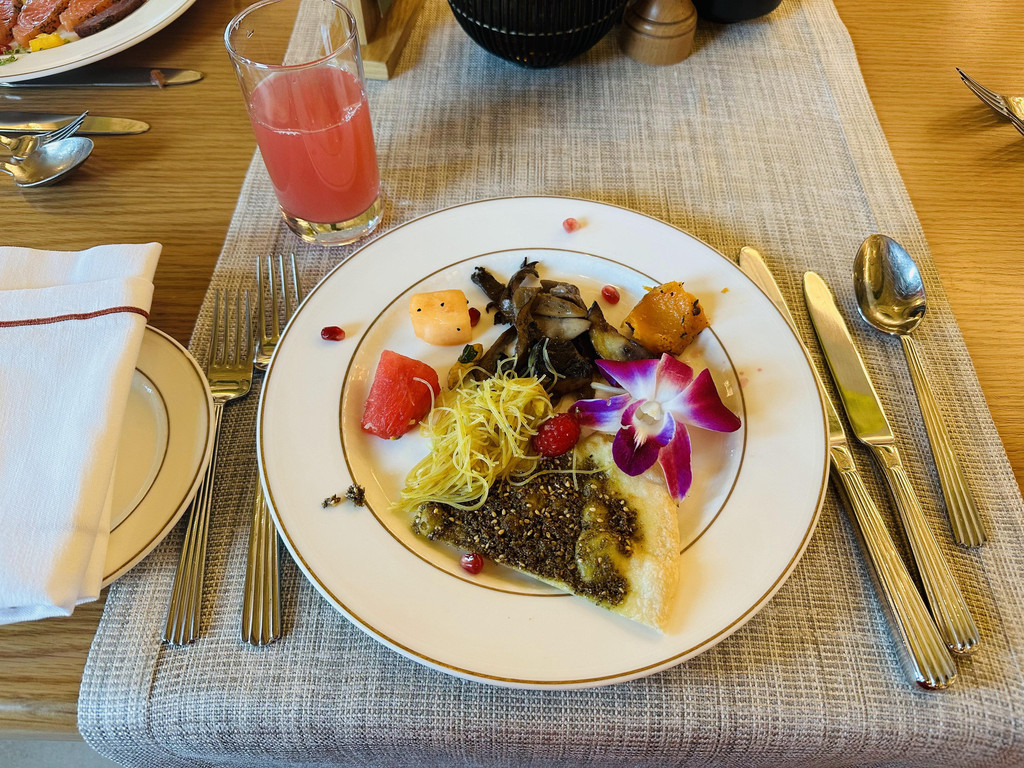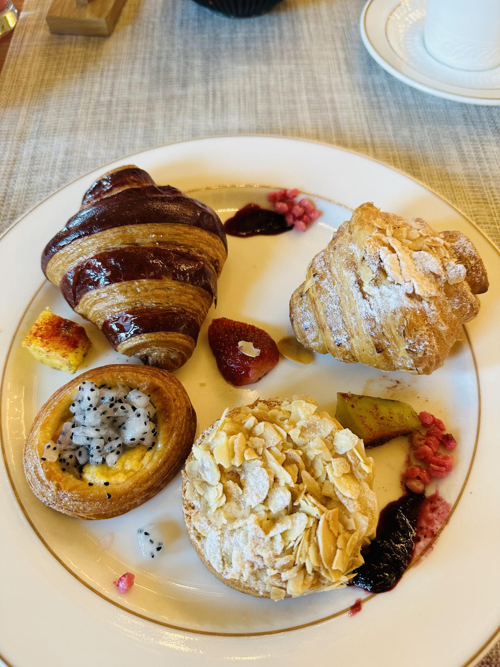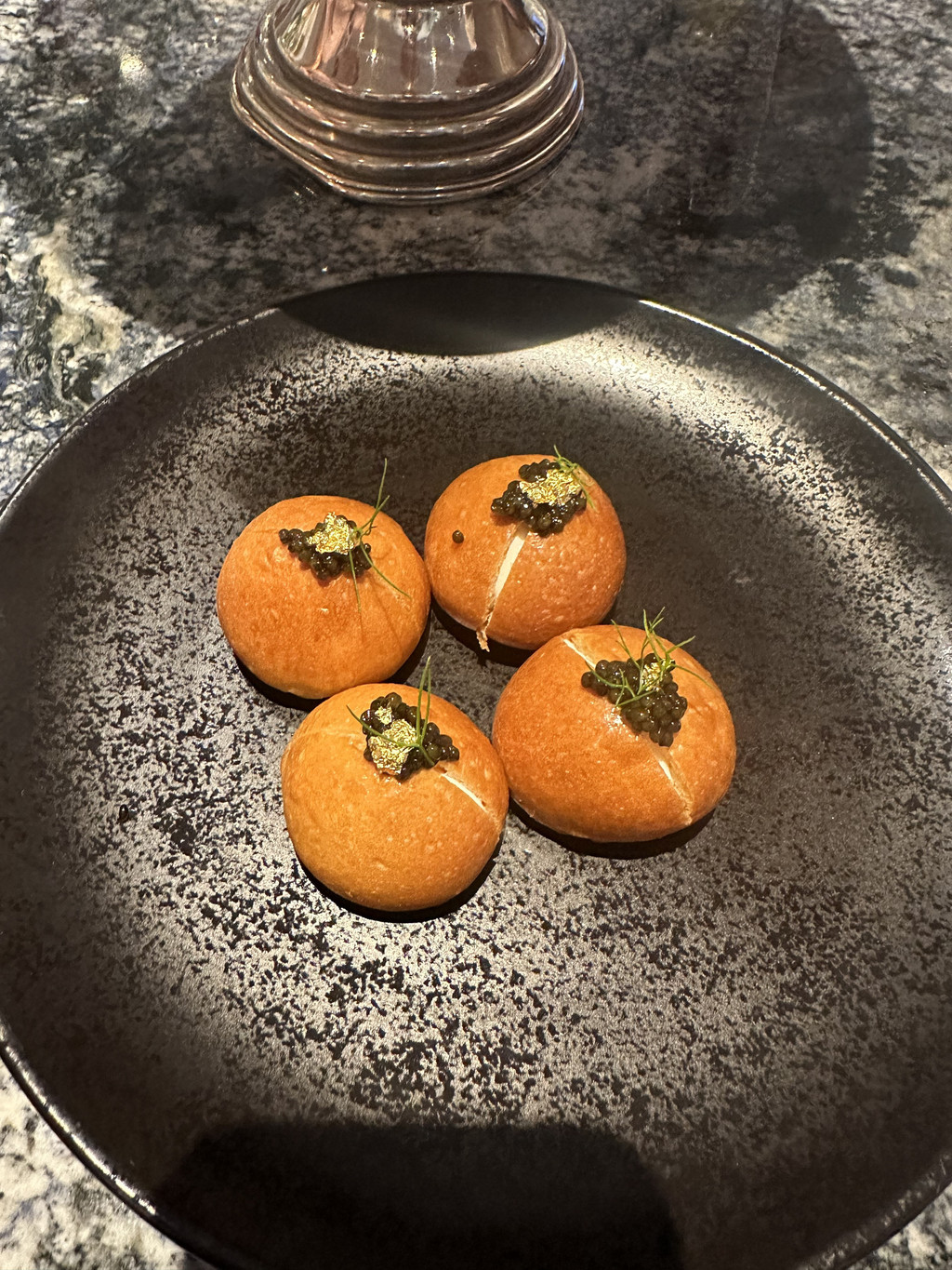 入住不一会儿,管家送来了金箔鱼子酱面包,算是住店客人的小小福利。