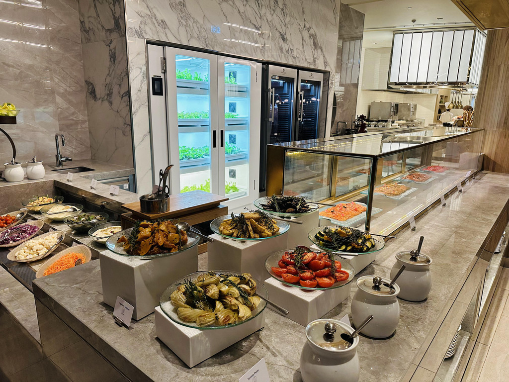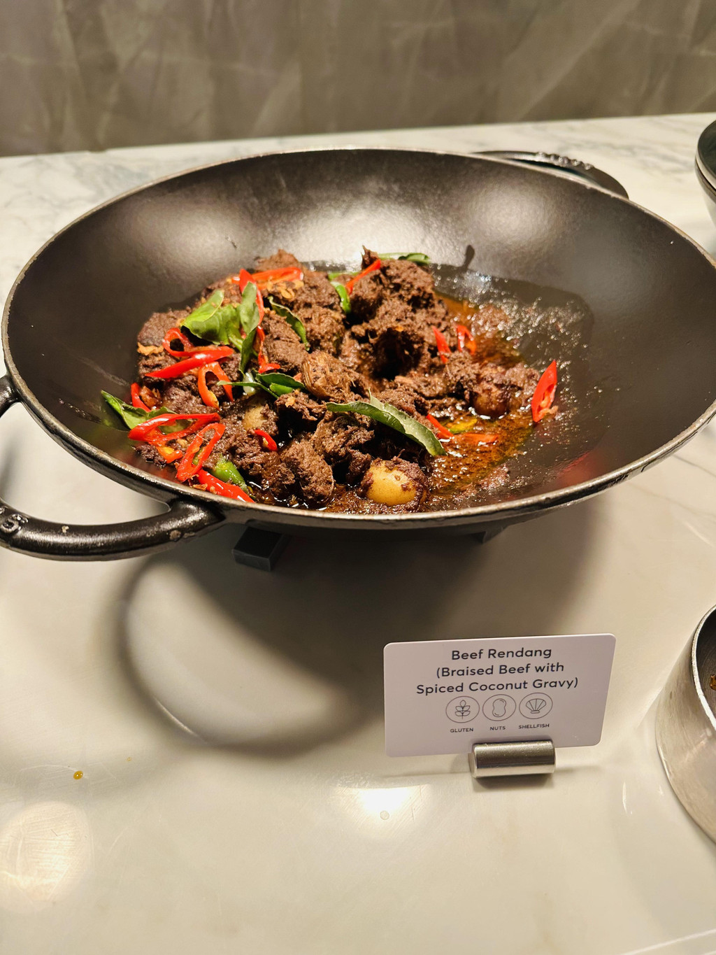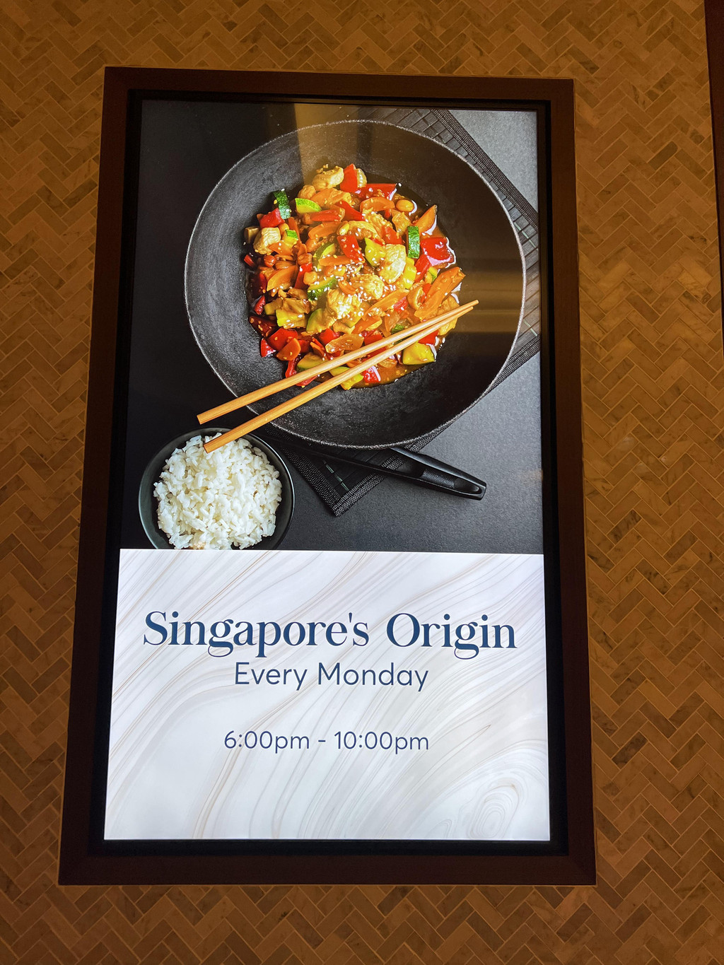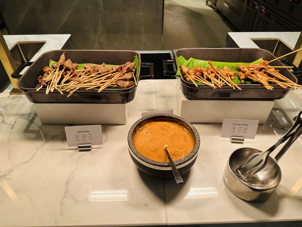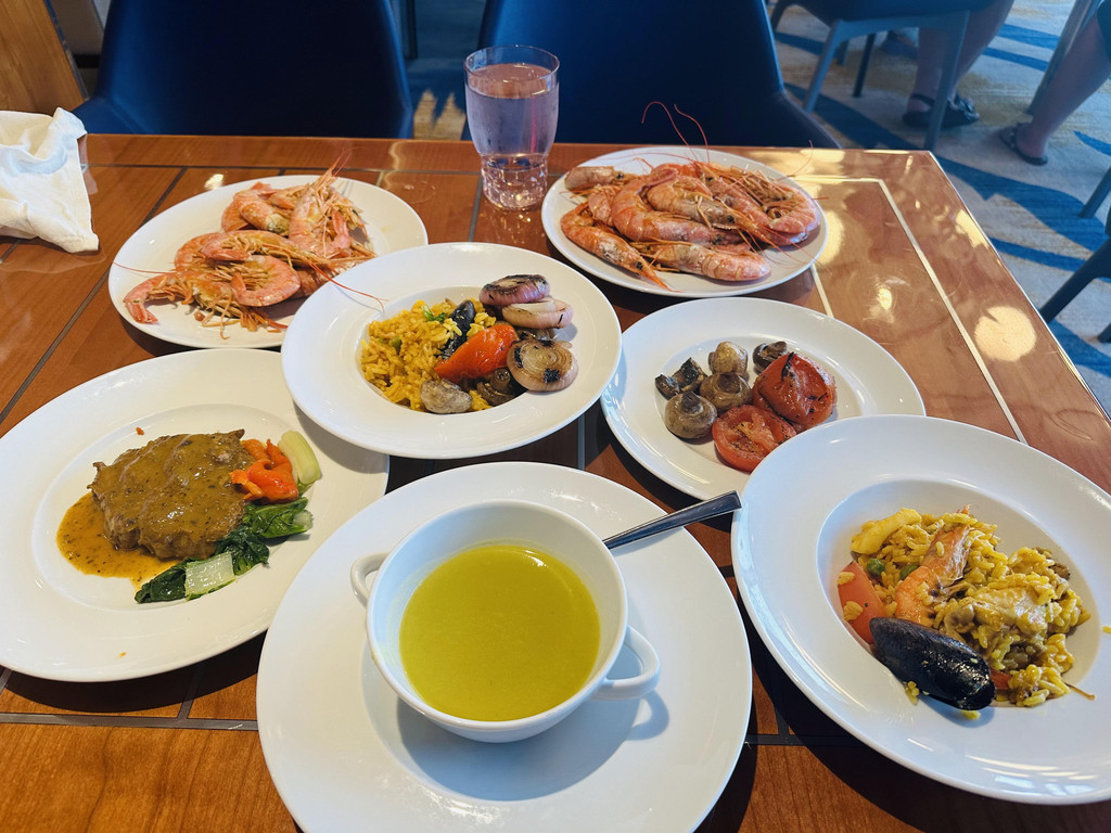 今天的晚餐订在酒店内的藏红花自助餐厅。酒店一共有两家自助餐厅,藏红花自助餐厅菜品偏亚洲,万花筒自助餐厅菜品偏西方。作为拥有中国胃的我们,自然是选择前者。而且运气也不错,餐厅每天都有不同的风味,日本、韩国、泰国、马来菜系都有可能遇到,我们则遇到了与中餐最为接近的新加坡菜。酒店也很有心地播放了一众新加坡歌手如林俊杰、孙燕姿等人的歌曲。