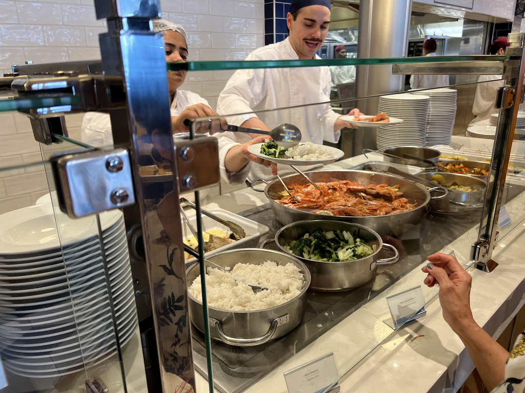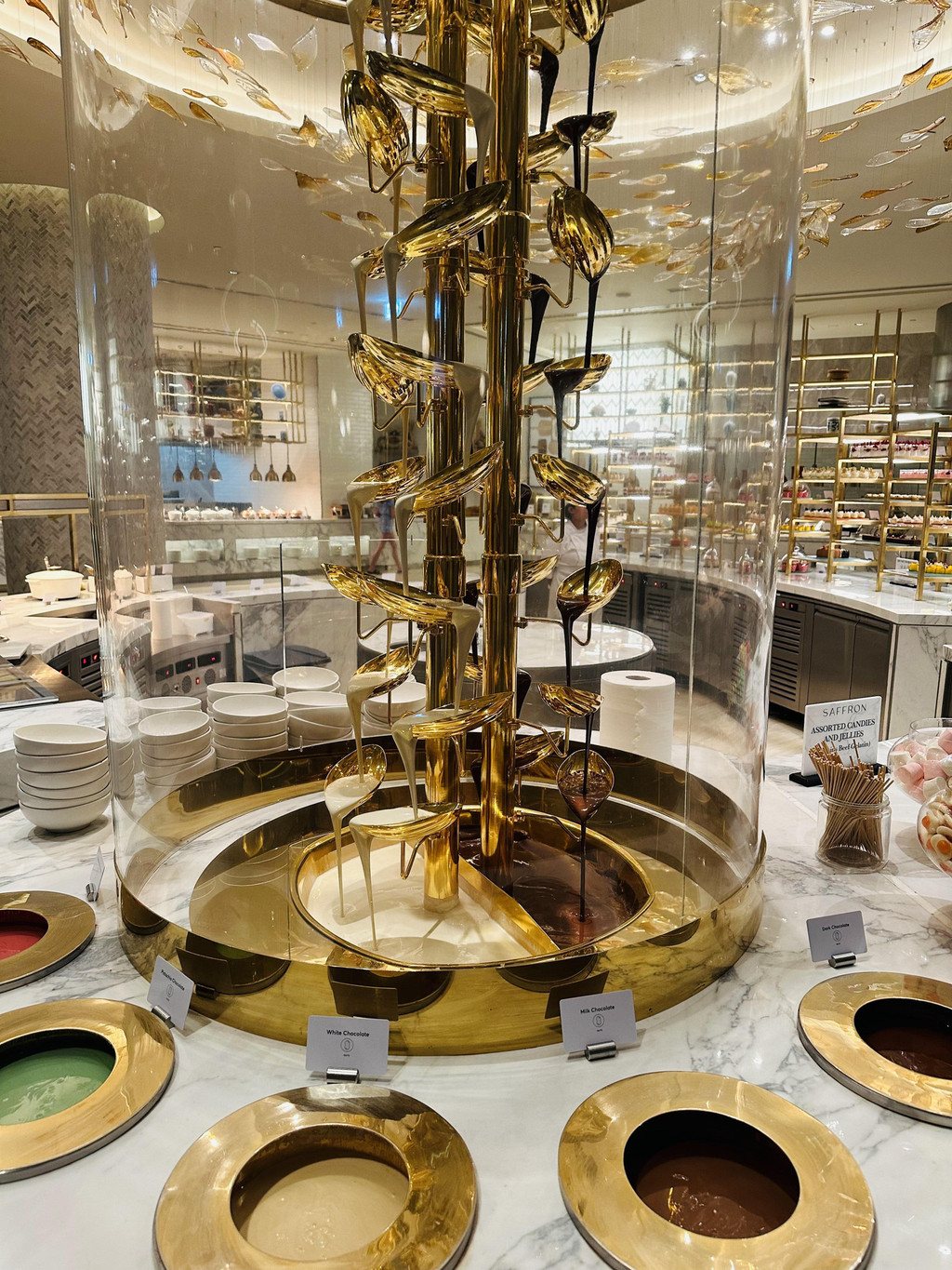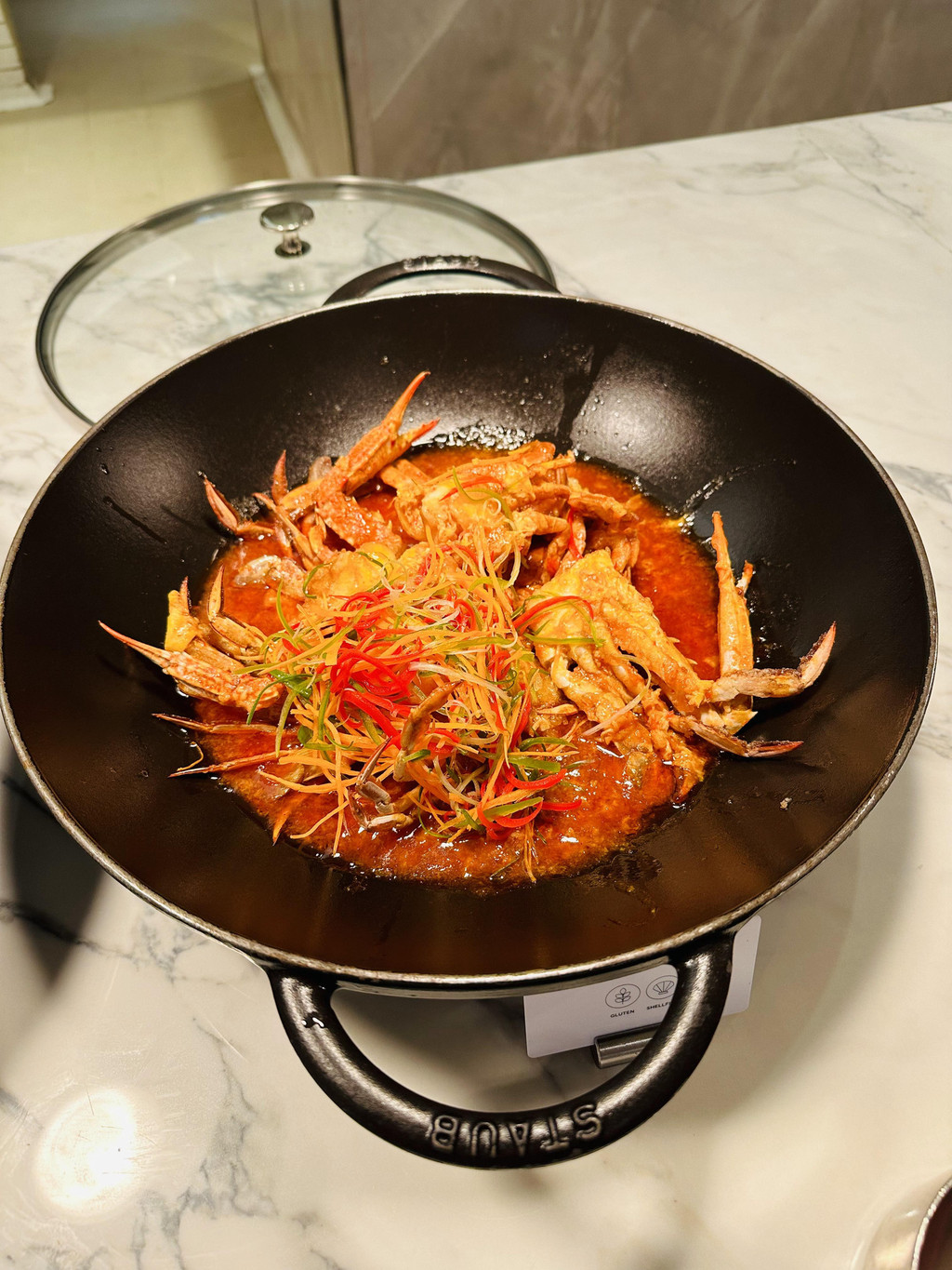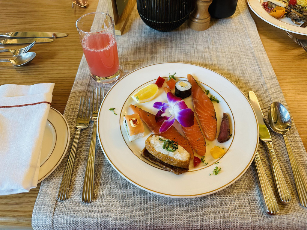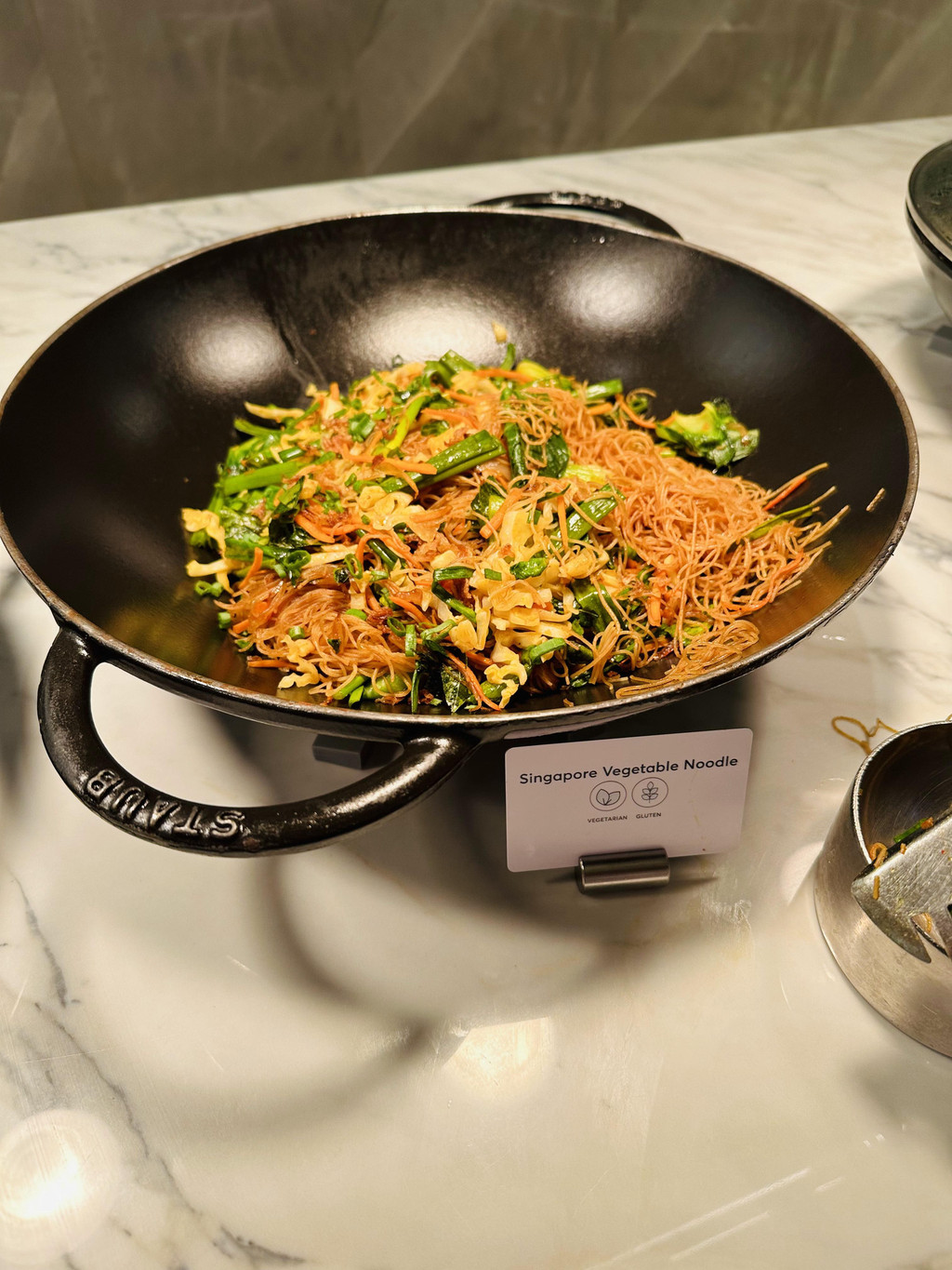 今天的晚餐订在酒店内的藏红花自助餐厅。酒店一共有两家自助餐厅,藏红花自助餐厅菜品偏亚洲,万花筒自助餐厅菜品偏西方。作为拥有中国胃的我们,自然是选择前者。而且运气也不错,餐厅每天都有不同的风味,日本、韩国、泰国、马来菜系都有可能遇到,我们则遇到了与中餐最为接近的新加坡菜。酒店也很有心地播放了一众新加坡歌手如林俊杰、孙燕姿等人的歌曲。