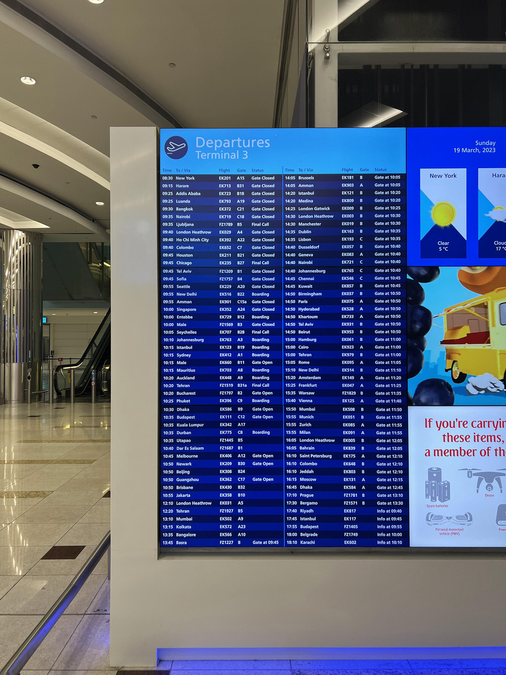 迪拜机场不愧是世界上最重要的航空枢纽之一,拥有到全世界各大城市的航班。