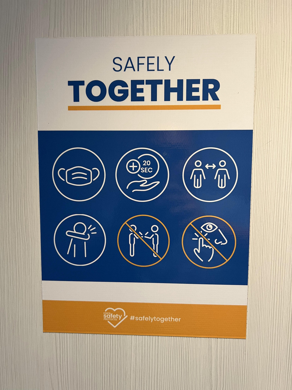 2020年的钻石公主号事件给邮轮公司敲响了防疫的警钟,于是船方贴心地提醒大家要做好疫情的防护措施。当然在邮轮这种特殊的环境里,想要完全做到图片中的几点是不可能的。