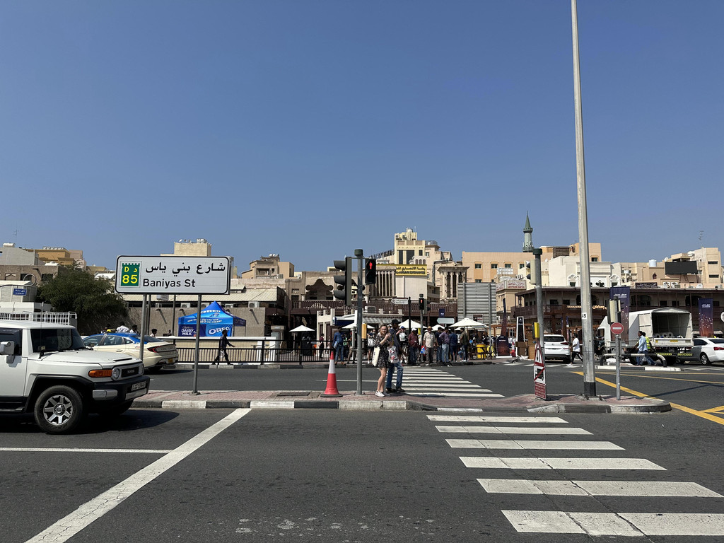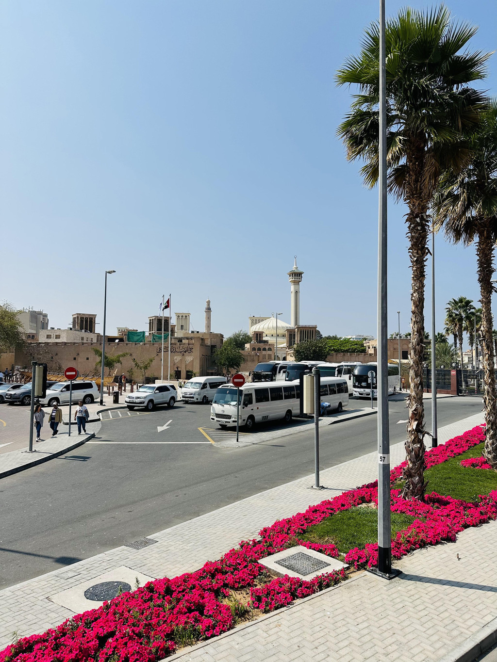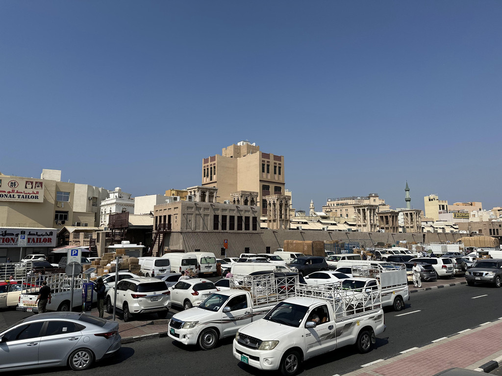 迪拜老城区,一些游客看到风景别致就下车了,我们的目的地是黄金市场和香料市场,所以先不下车。