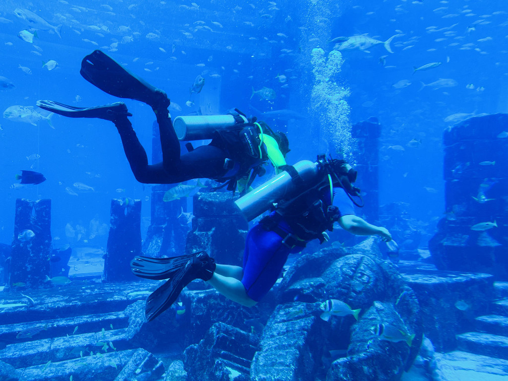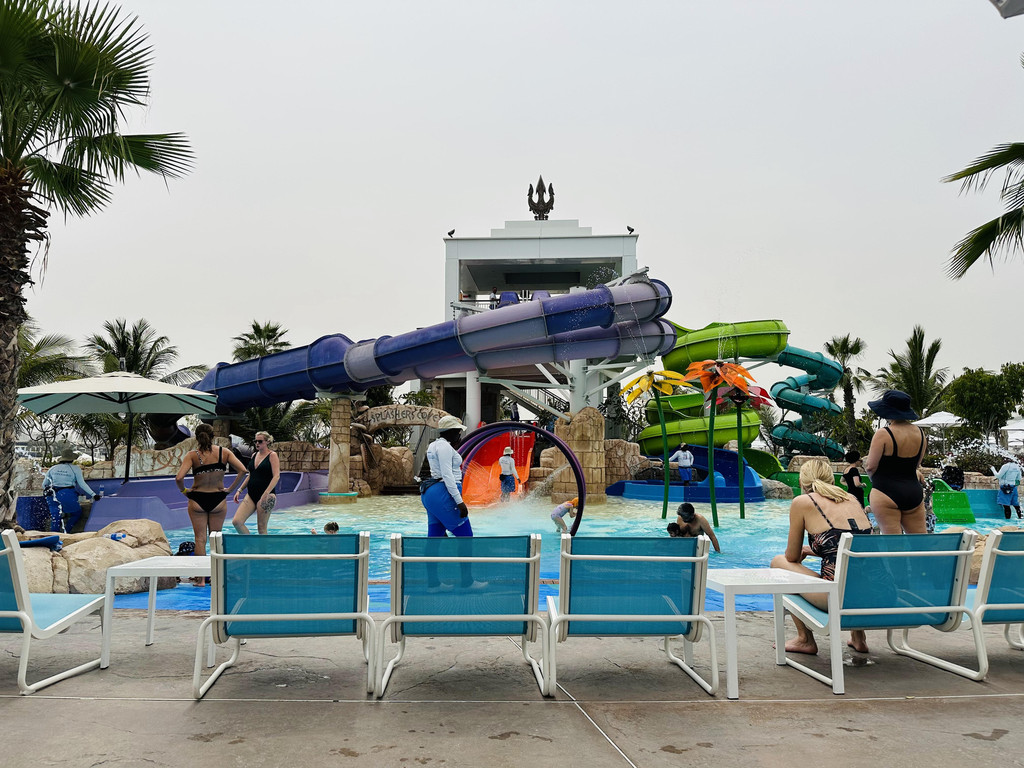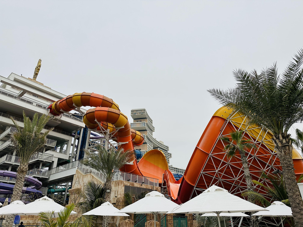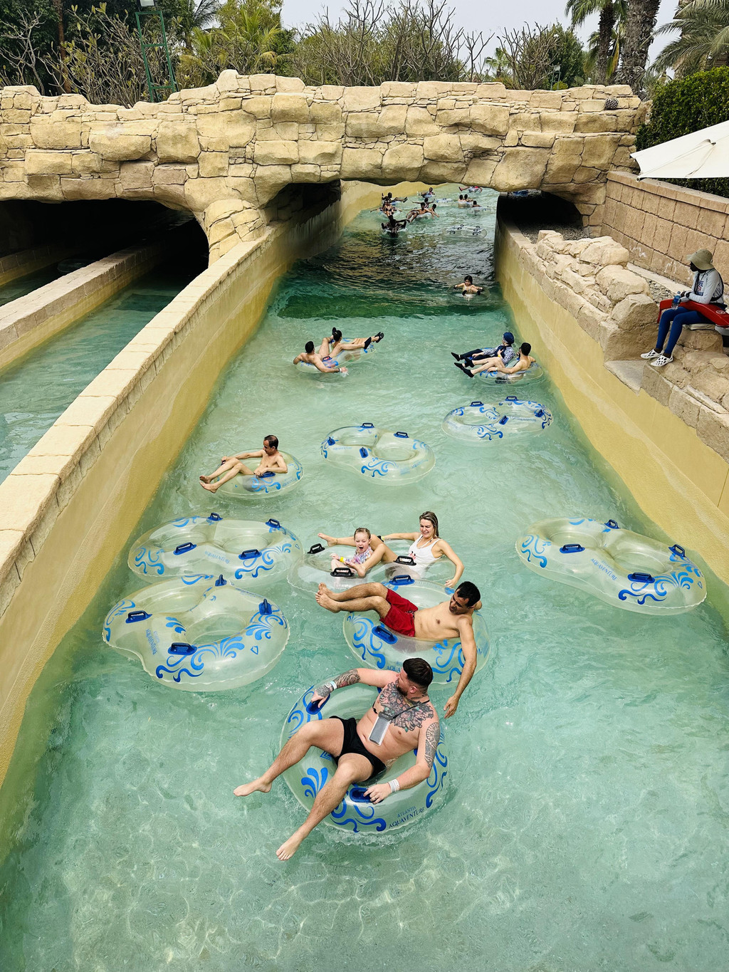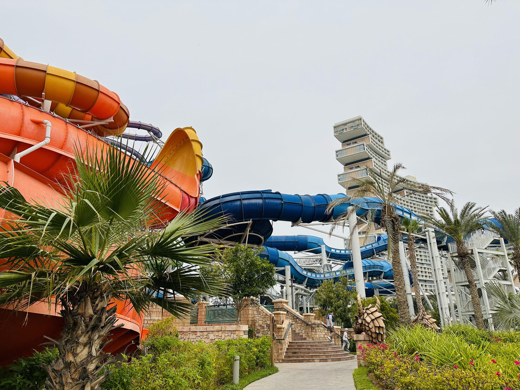作为中东地区最大的水上公园,水世界自然吸引了来自全球各地的游客,其中最有名的滑道需要游客爬到九层楼的高度,然后俯冲而下,在周围都是各种鱼类的透明管道中穿行而过,再抛到水池中。那么“恐怖”的项目我们自然是不会参加的,所以只参加了老少皆宜,不那么刺激的项目。总的来说,如果不是入住亚特兰蒂斯酒店,单独购票前来游玩水世界,并不划算。