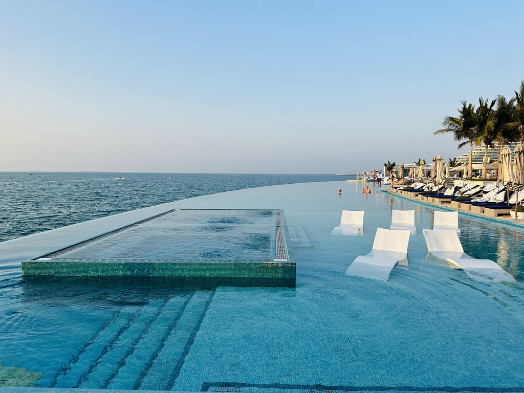傍晚到酒店楼下转转,欣赏无边游泳池。