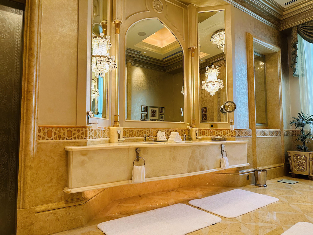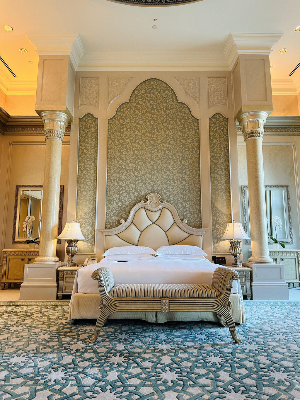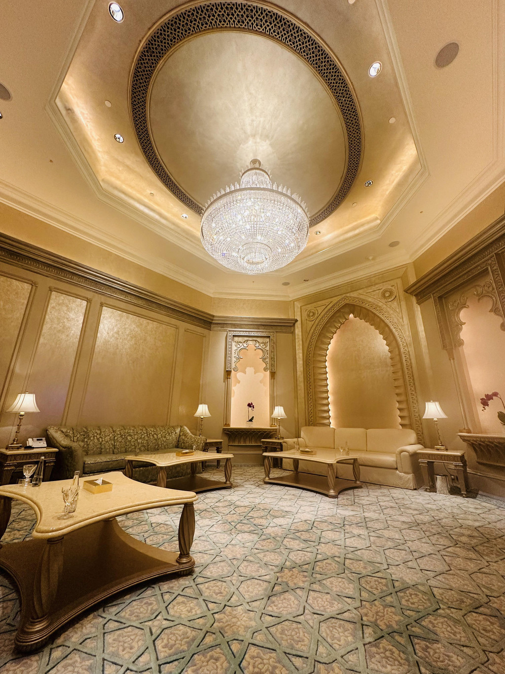 阿联酋以壕闻名,自然不缺顶级酒店。这次的行程内必然包含8星酋长宫殿、7星帆船和6星亚特兰蒂斯,为了给水世界和水族馆留下充分的时间,亚特兰蒂斯酒店还要住两晚,最后在迪拜mall附近的阿拉穆如瑞士酒店再住几天。其他酒店都有三人房,唯独酋长宫殿没有,要想三人入住,必须住两个标间。想想这样也没意思,好不容易到土豪国,干脆咬牙做一次土豪,订了一间宫殿套房,将近400平方!后来又觉得在阿布扎比只住一天太紧张,又在靠近大清真寺的丽思卡尔顿酒店住一晚。