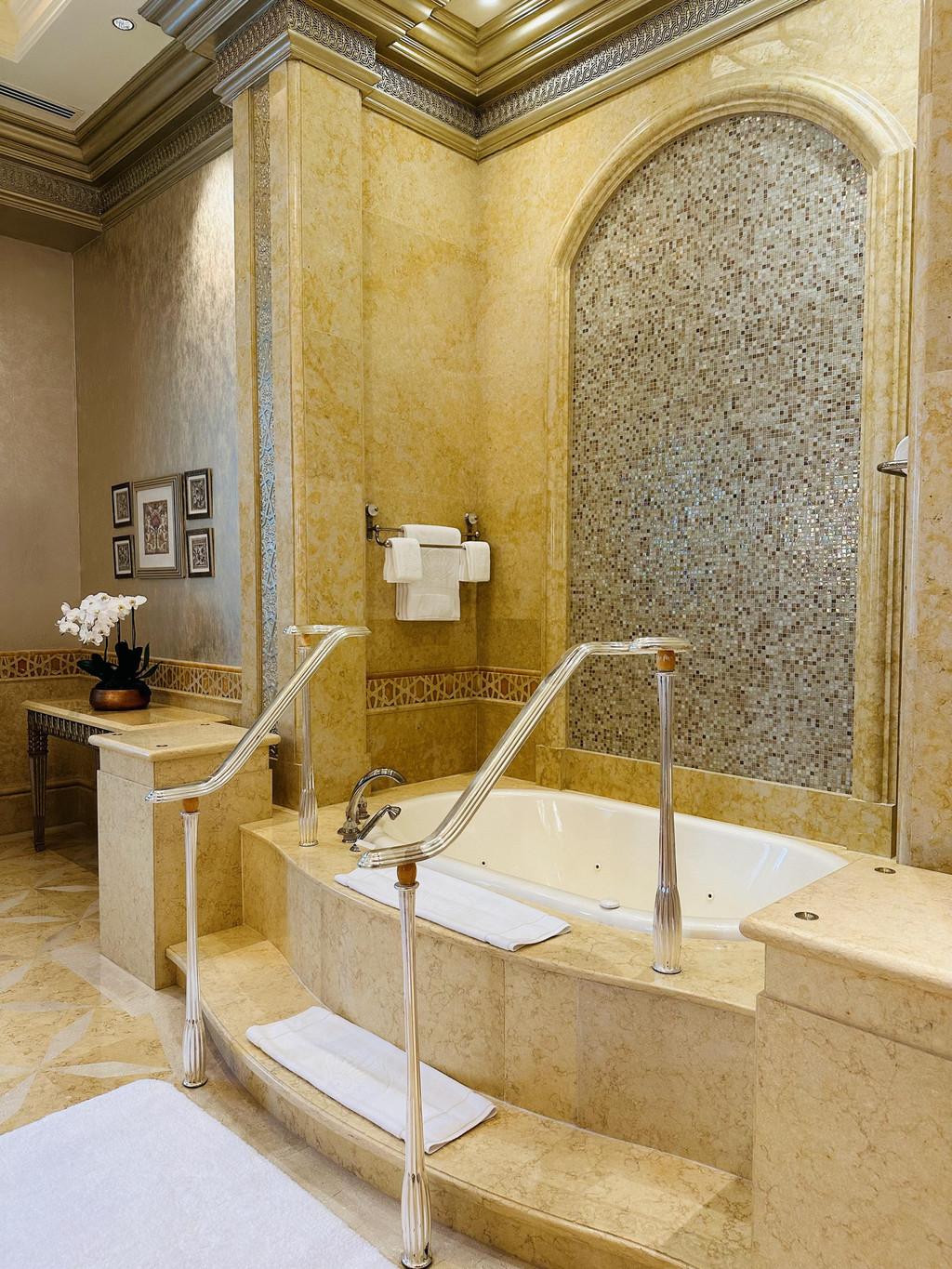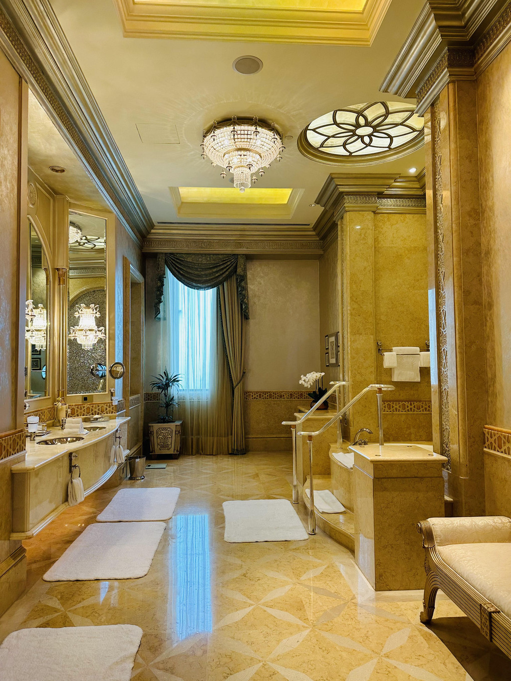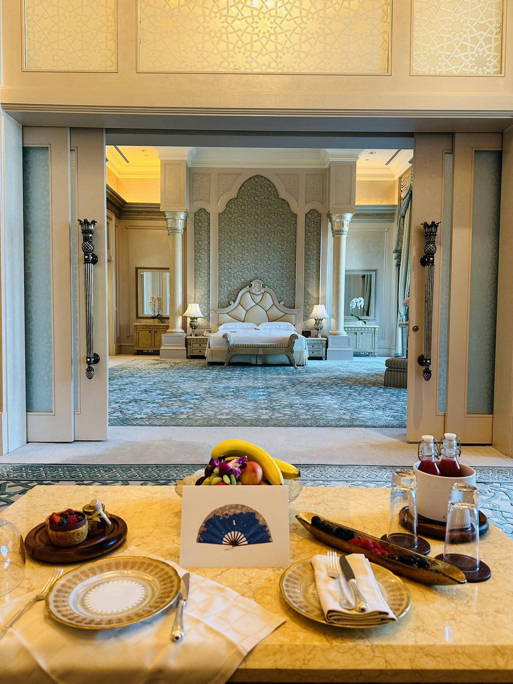 阿联酋以壕闻名,自然不缺顶级酒店。这次的行程内必然包含8星酋长宫殿、7星帆船和6星亚特兰蒂斯,为了给水世界和水族馆留下充分的时间,亚特兰蒂斯酒店还要住两晚,最后在迪拜mall附近的阿拉穆如瑞士酒店再住几天。其他酒店都有三人房,唯独酋长宫殿没有,要想三人入住,必须住两个标间。想想这样也没意思,好不容易到土豪国,干脆咬牙做一次土豪,订了一间宫殿套房,将近400平方!后来又觉得在阿布扎比只住一天太紧张,又在靠近大清真寺的丽思卡尔顿酒店住一晚。