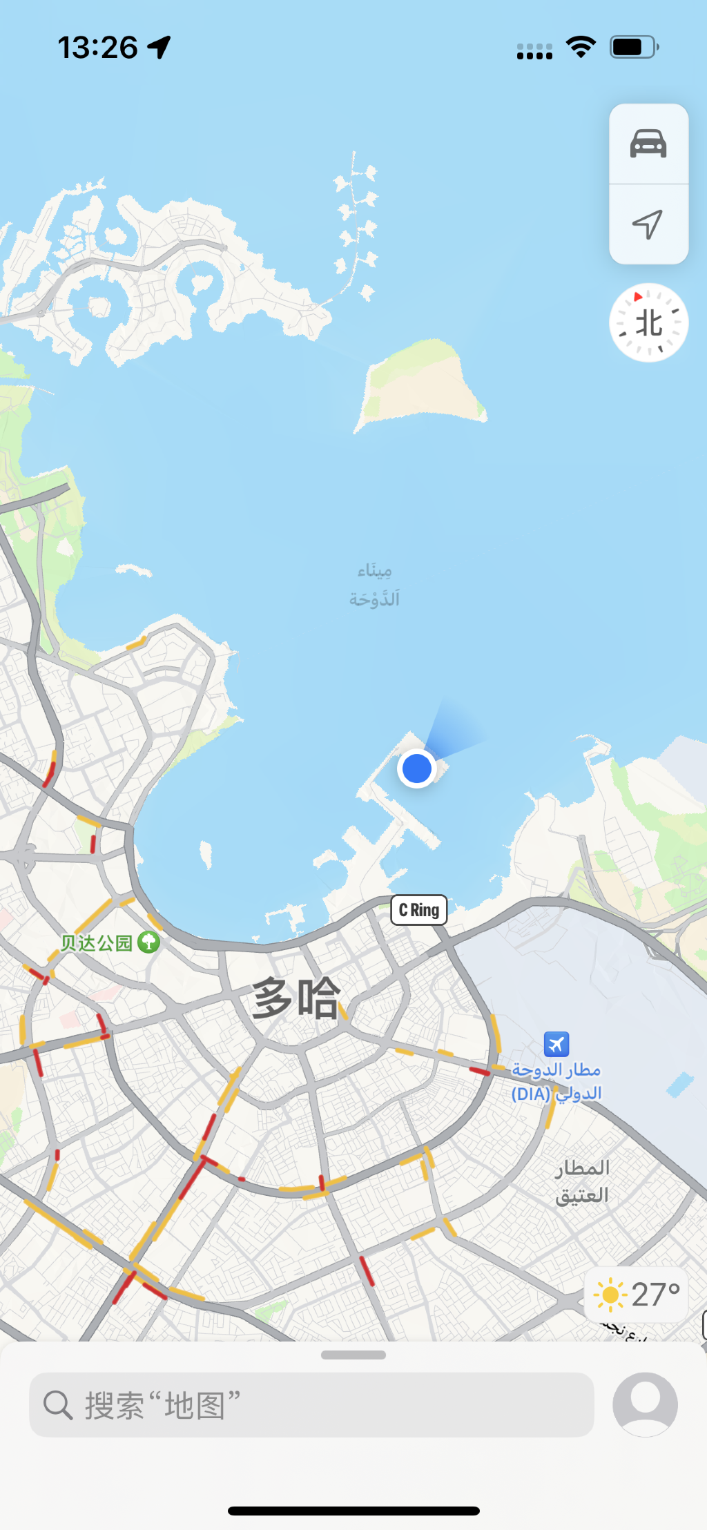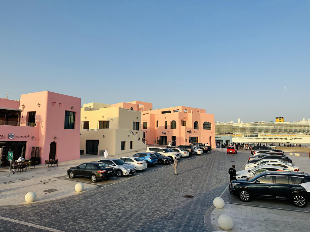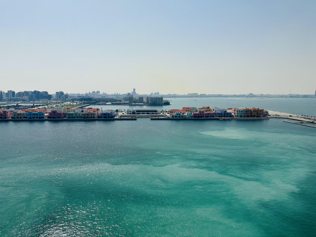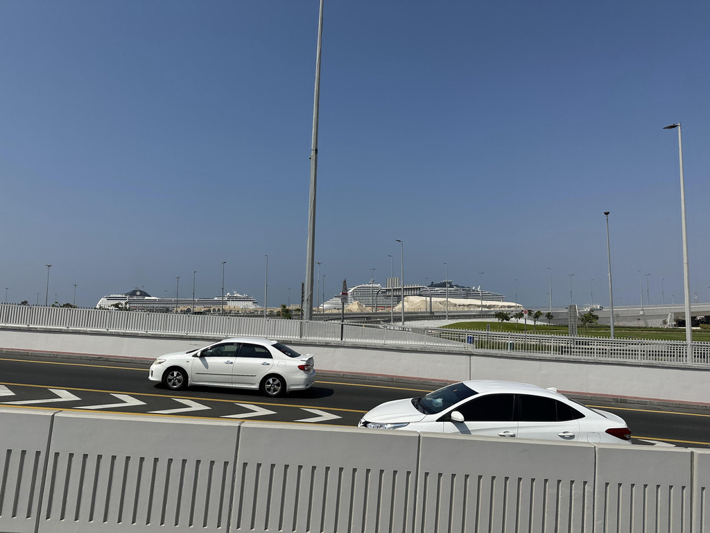 多哈邮轮码头的位置十分优越,可以说就在市中心,旁边就是多哈国际机场,不用像迪拜一样赶来赶去。地图北边是卡塔尔之珠,是可以跟迪拜棕榈岛媲美的人工岛。