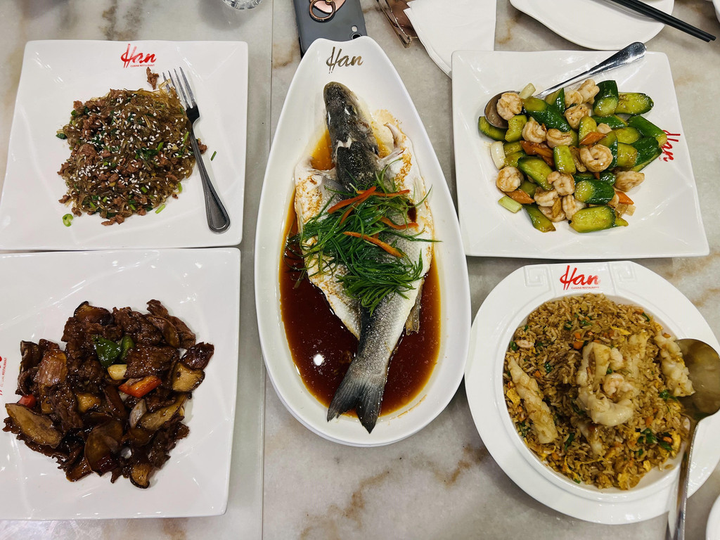 难得吃到了像模像样的中餐,其中香辣蟹最棒。旁边的几个俄罗斯人不知道是走错了餐厅还是不懂得欣赏中餐,看着这些美味佳肴却无从下嘴,只能拿炒面和炒饭来充饥。
