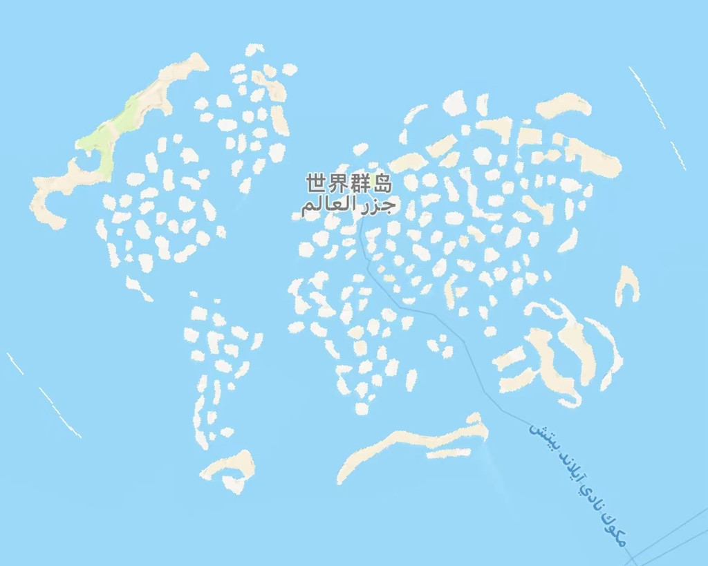 在海面上“漂浮”的是世界群岛,是在世界地图的基础上稍作修改的人工群岛。