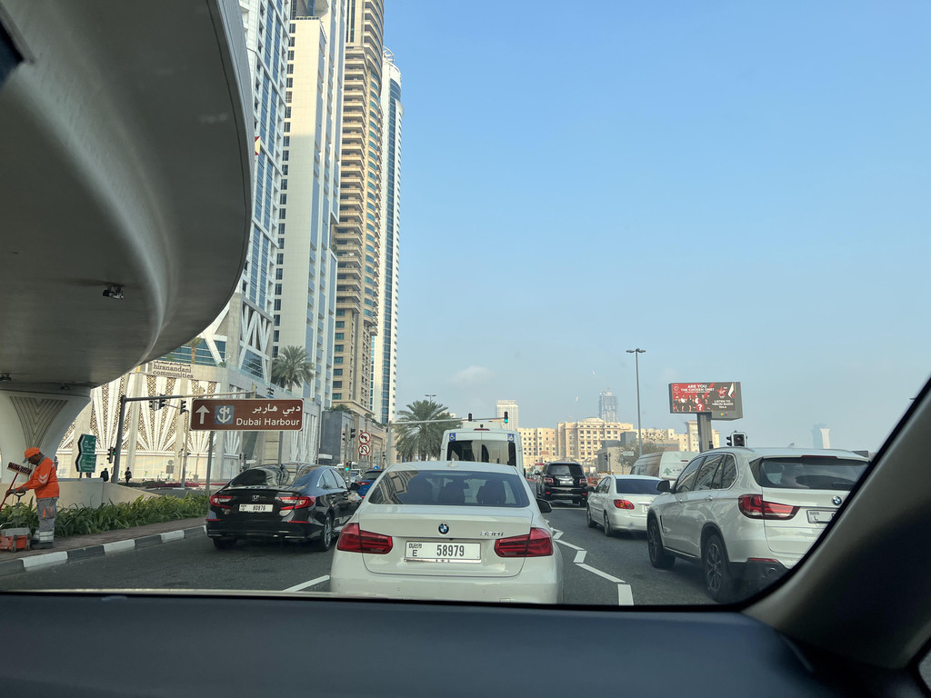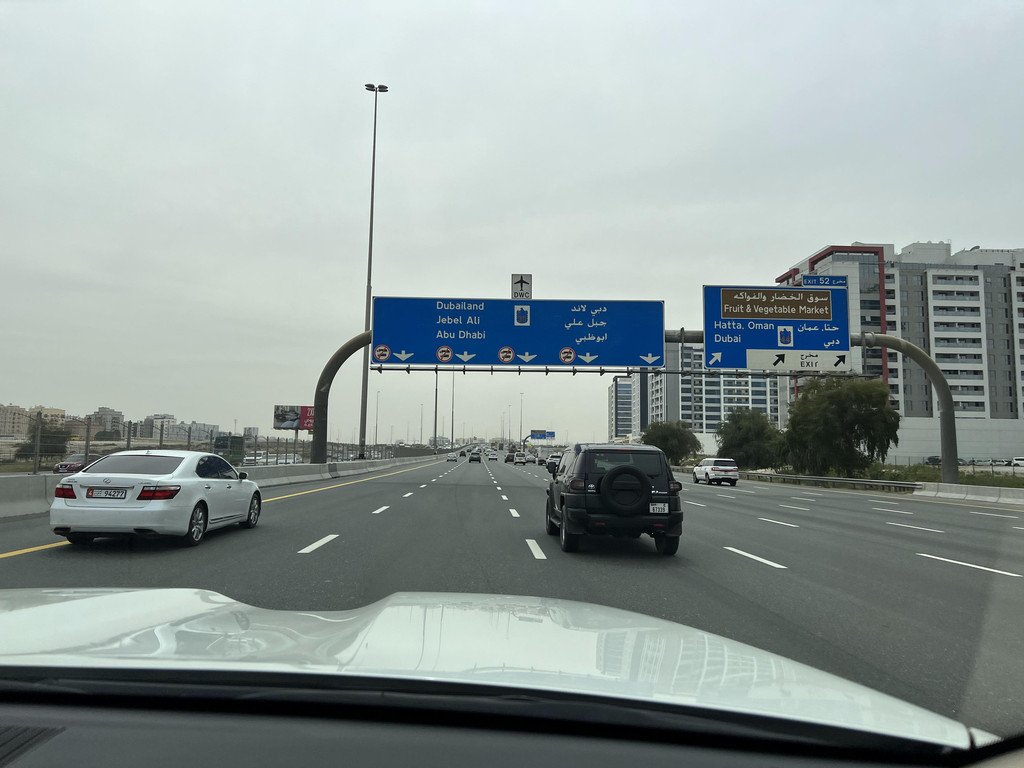 目的地附近,路牌上写的是Dubai Harbour,并没有写Mina Jebel Ali,这点确实会让人产生误会。
