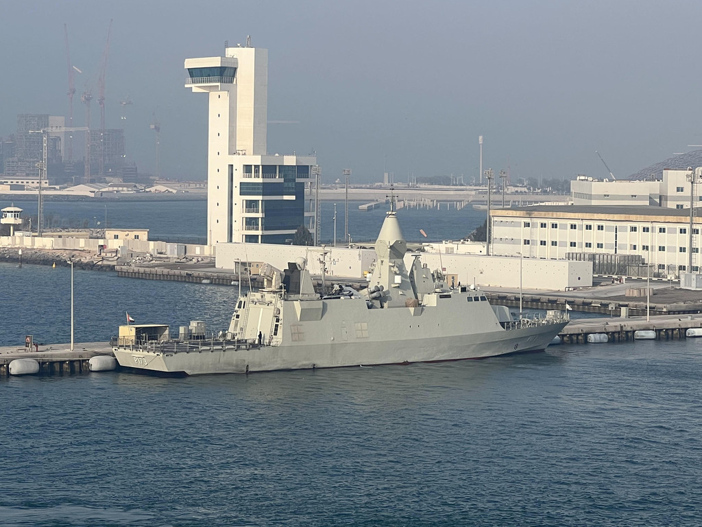 经过一整夜的航行,抵达卡塔尔多哈,当地政府派出巡逻艇前来护航。