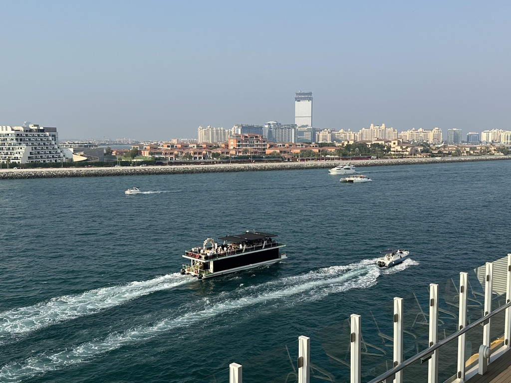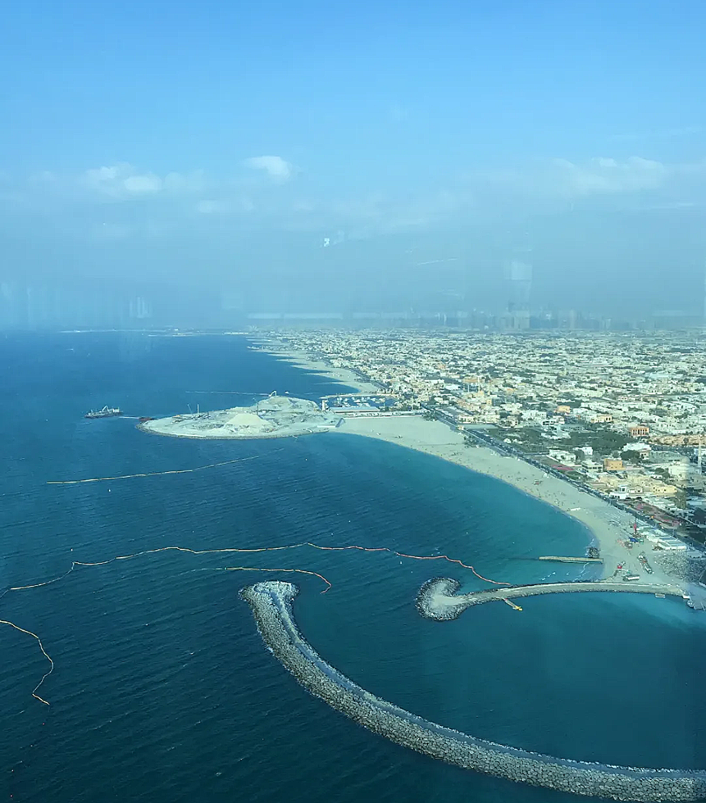 如图所示,Dubai Harbour在棕榈岛旁边,天气晴朗的话可以看到亚特兰蒂斯酒店。