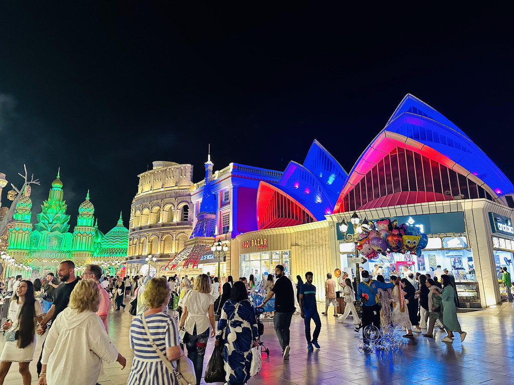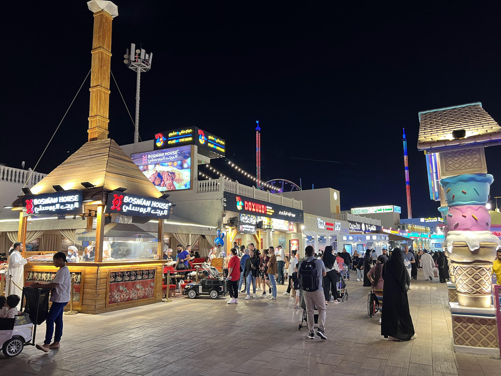 终于到了最后一站——迪拜地球村,一个集商铺、小吃、游乐场和灯光于一体的乐园。平日门票20迪拉姆,周五周六门票25迪拉姆。