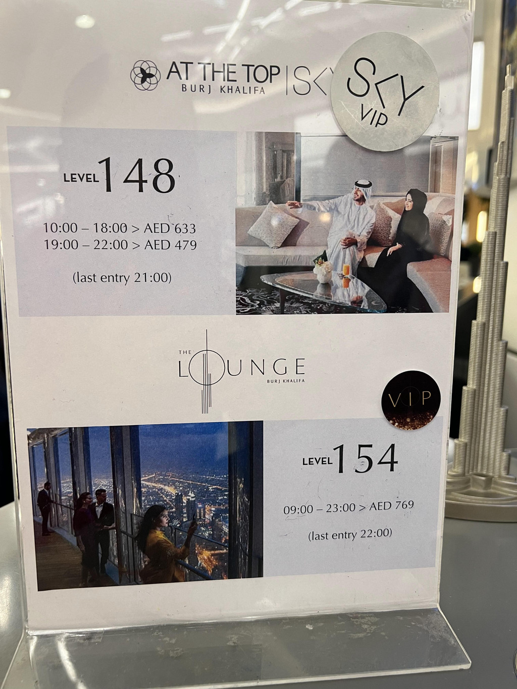 我们最后买了第一种vip,每张633迪拉姆,等于1200人民币!工作人员会安排vip票持有者到一个特定的房间里,随后安排优先乘坐电梯。