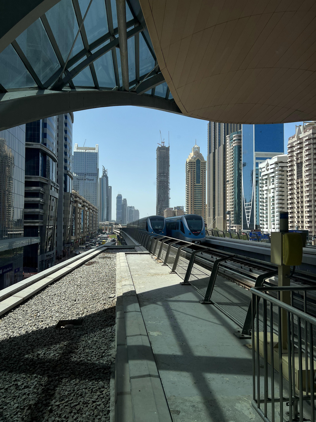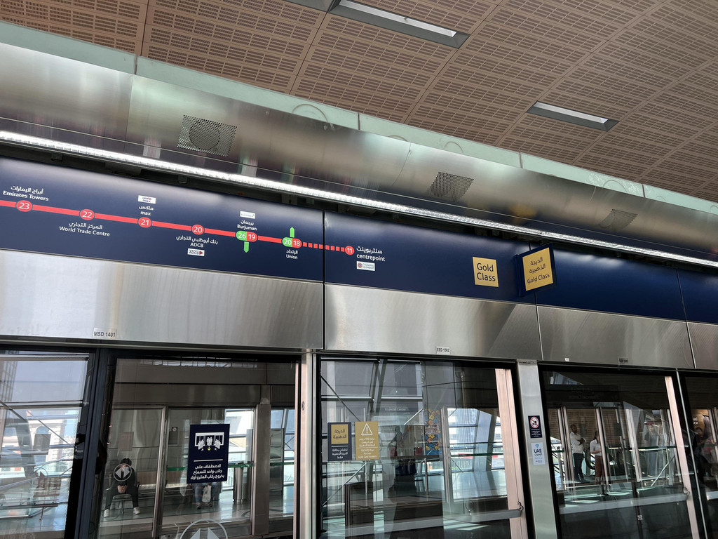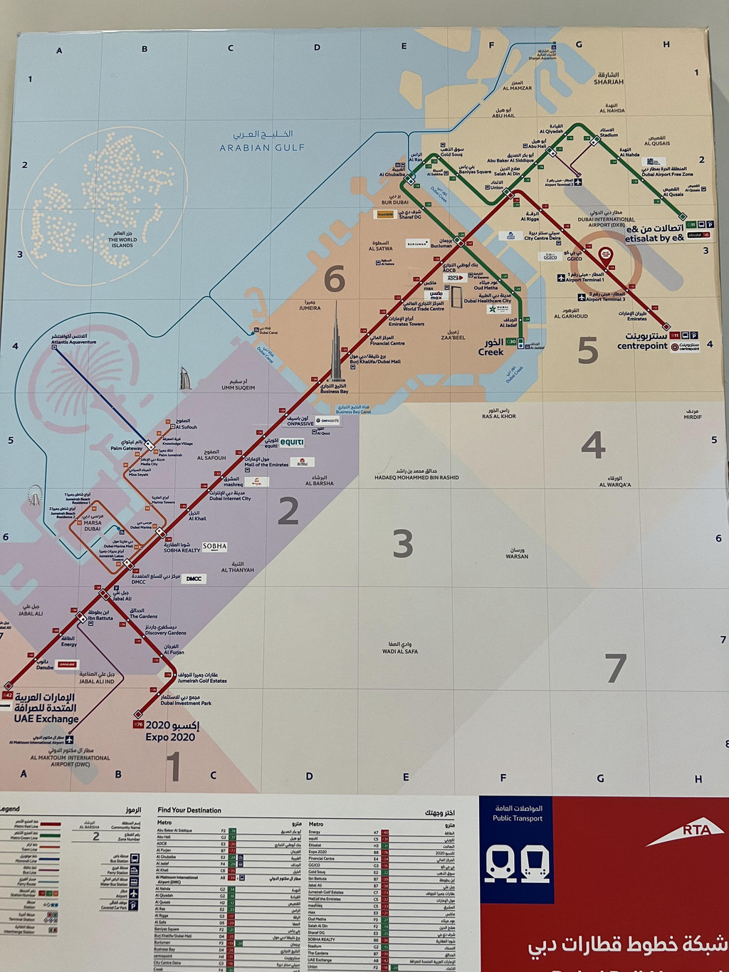 当天去机场还车后,坐迪拜地铁到阿尔法迪历史街区游玩,把阿联酋之行的最后一块拼图补齐。迪拜地铁分红线和绿线,红线大部分都在高架桥上运行,叫轻轨更合适。