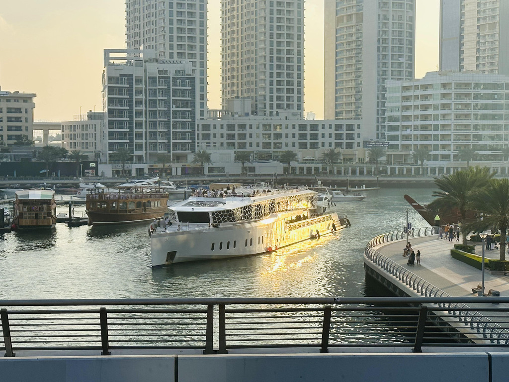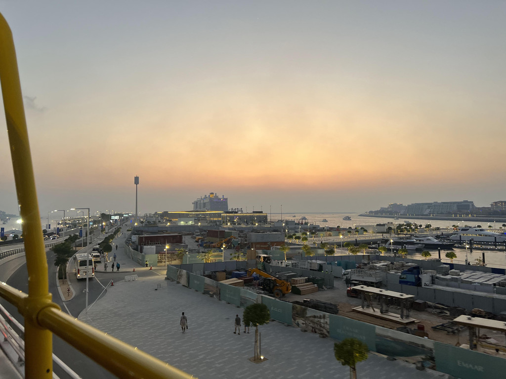 观光车回邮轮码头时,还要到迪拜码头转一圈。由于已经是晚高峰,迪拜公共交通又不发达,所以交通非常之拥堵。迪拜码头风景非常不错,而且是外籍人士和游客的聚集地,人们的穿着也并没有包头包脚,反倒是十分开放,所以看起来根本不像中东,更像是西方国家。