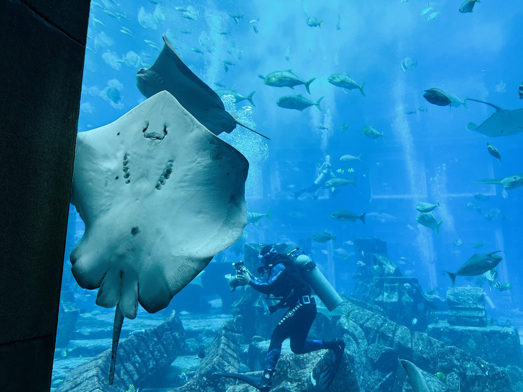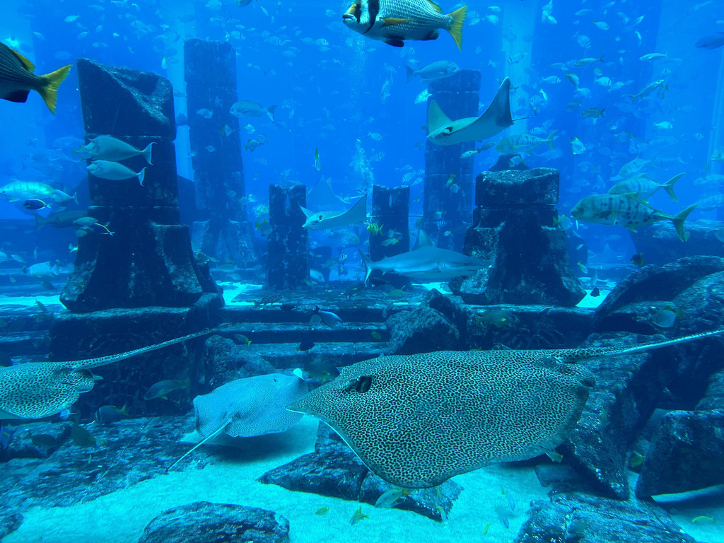 第一次去亚特兰蒂斯失落的空间水族馆还是在2019年12月底的三亚(疫情之前的疯狂),酒店中间的超大鱼缸让人记忆犹新。为了一睹水族馆全貌,我们还单独买了票进去。这次的水族馆门票是赠送的,酒店客人可以凭房卡随意进出。至于感觉么,由于已经看过一次,所以这次感觉一般般啦,顶多半小时就出来了。