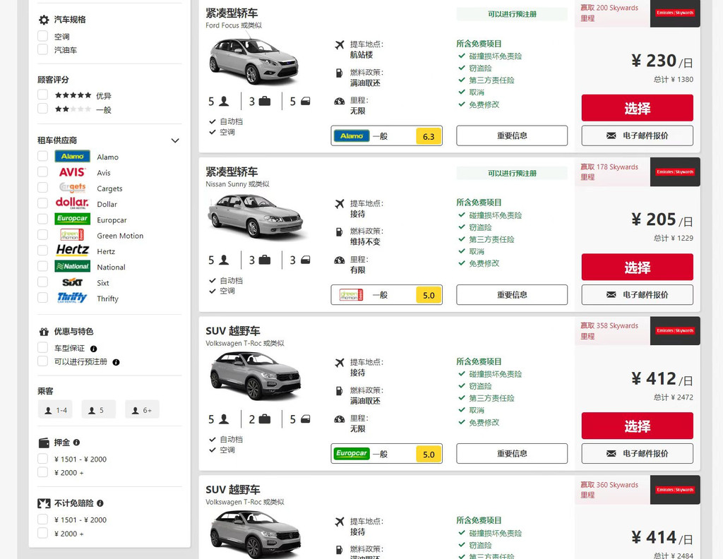 如之前提到,虽然有丰富的北美自驾经验外加英语水平,但是在非英语国家租车还是头一次。在做了大量功课后,觉得在国际化程度非常高的阿联酋租车并非难事,后来的事实证明也的确如此。阿联酋的租车公司不仅有耳熟能详的美国大品牌Hertz和Avis及旗下公司,还有欧洲最大租车公司Europcar。比较下来发现Europcar性价比最高,车型也不少,就决定试试看。(在阿联酋航空的租车页面订车比租车公司官网便宜)车型方面选择一开始选择了土豪车型——英菲尼迪QX80,在土豪国当然要开土豪车。后来因为订得晚了,所有车型全部涨价,只能选择丰田普拉多,因为Europcar自身的原因,给我们免费升级到丰田陆地巡洋舰,也算因祸得福。
