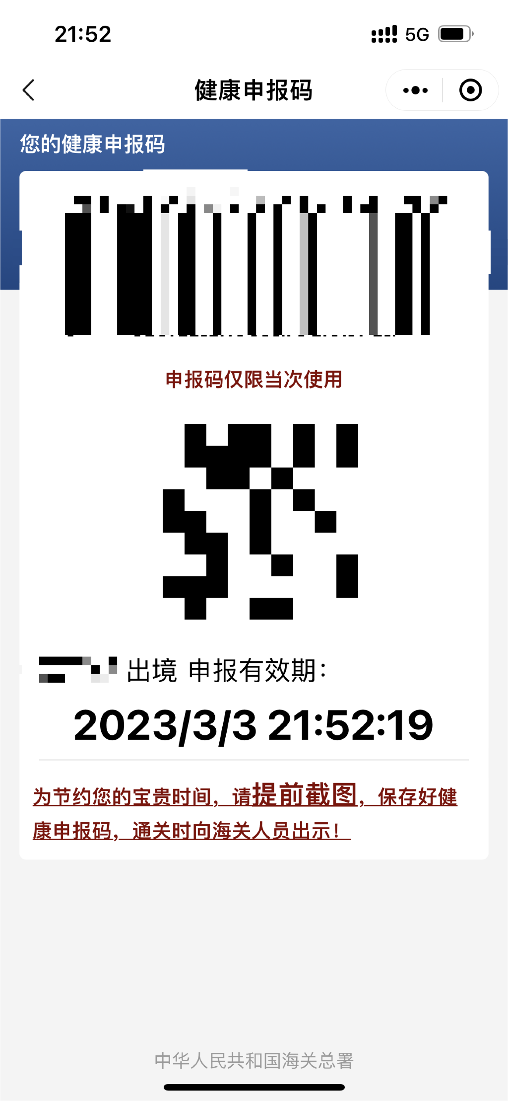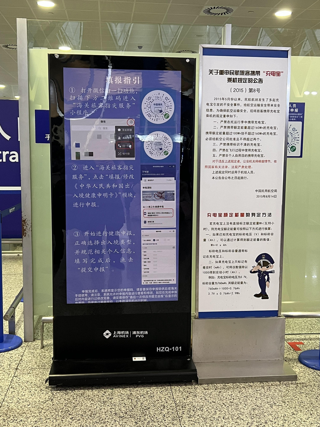 健康登记表,要求写从哪里来到哪里去,14天内的旅行轨迹等,最后会生成一个码。通关时用这个码在一个机器上扫一下即可。