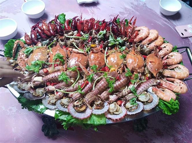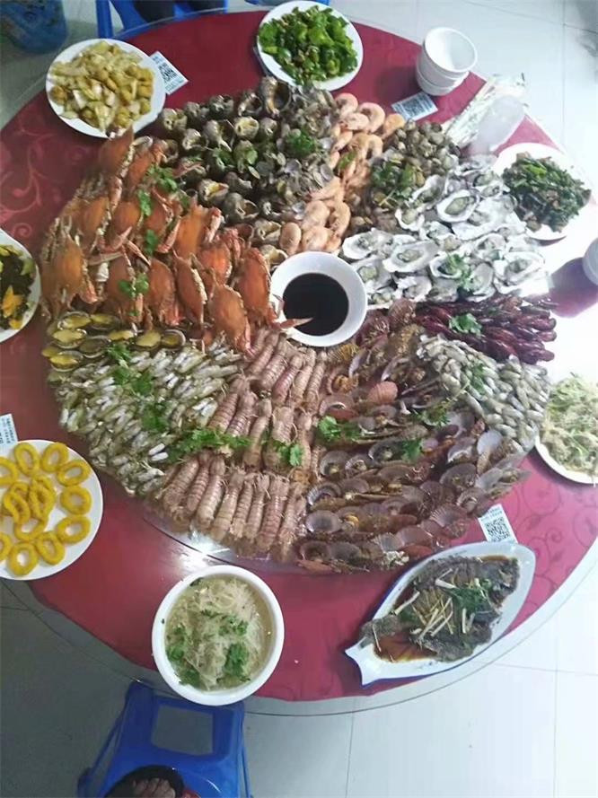 餐厅容纳 150人以上同时就餐,来到海边就想吃海鲜,这里盛产梭子蟹、黄蚬子、蛤蜊、海螺等。吃海鲜一定要买活的