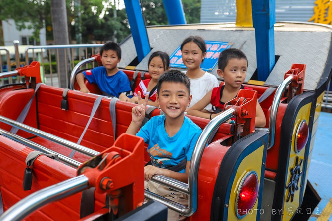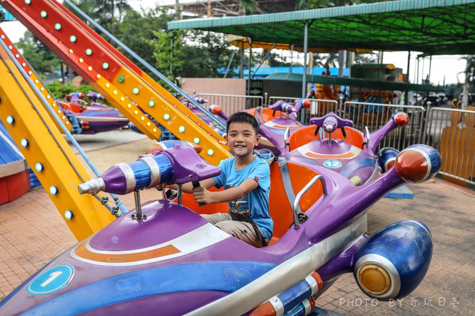后来在室外的大型游乐场,他也是玩得不亦乐乎。旋转木马、自控飞机、碰碰车......五花八门的娱乐设施应有尽有。