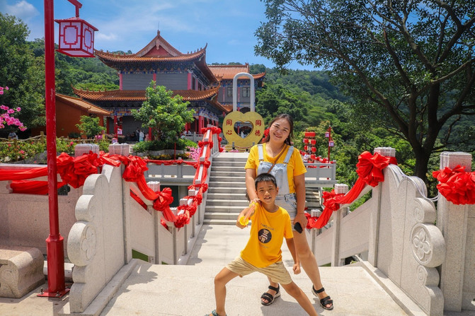 从水里出来换上干衣服,这下可以带着他好好地感受一下观音山的魅力和底蕴了。