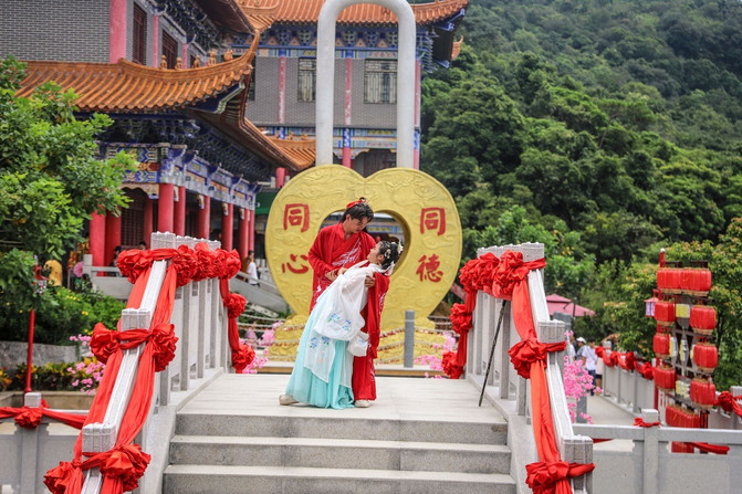 适逢七夕传统情人节,作为远近闻名的姻缘福地,观音山正举办一场七夕鹊桥会,我们有幸感受了一下。
