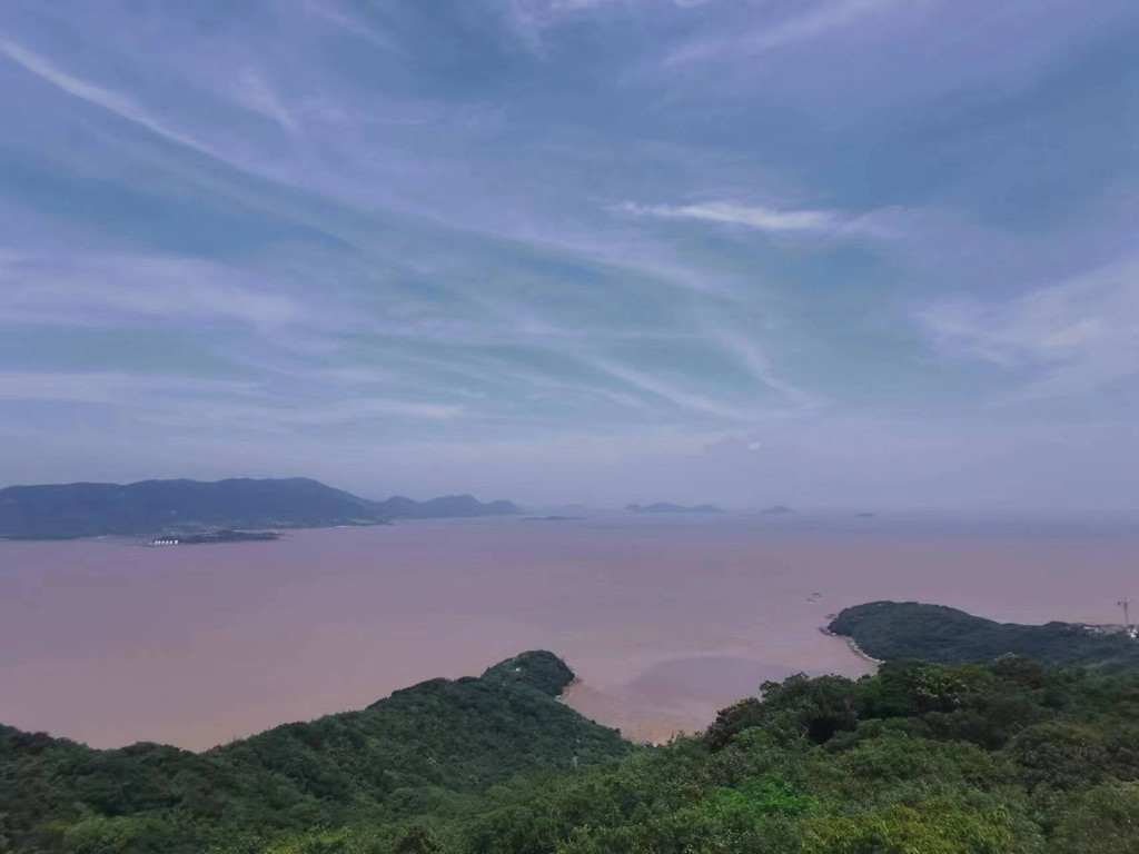 船行不久,便到了普陀山码头。孩子们在船上兴奋的跑来跑去,只是东海龙王靠近大陆的家不透明,海水浑黄,宛如没有光泽的黄色琥珀。