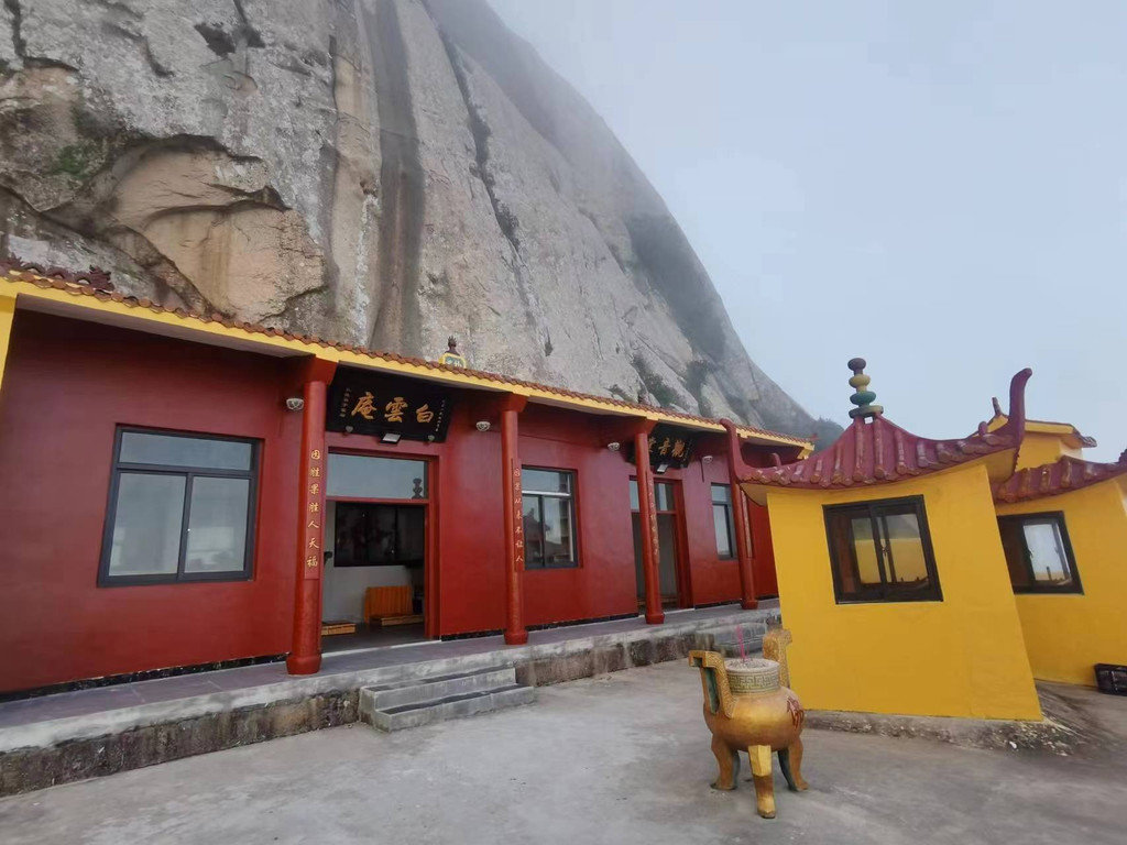 顺着岔路返回,沿大路前行200多米,到了白云庵,也是小小的两间房,供奉当地人的神祗。房前各有一座香炉,袅袅香烟盘旋舞蹈。