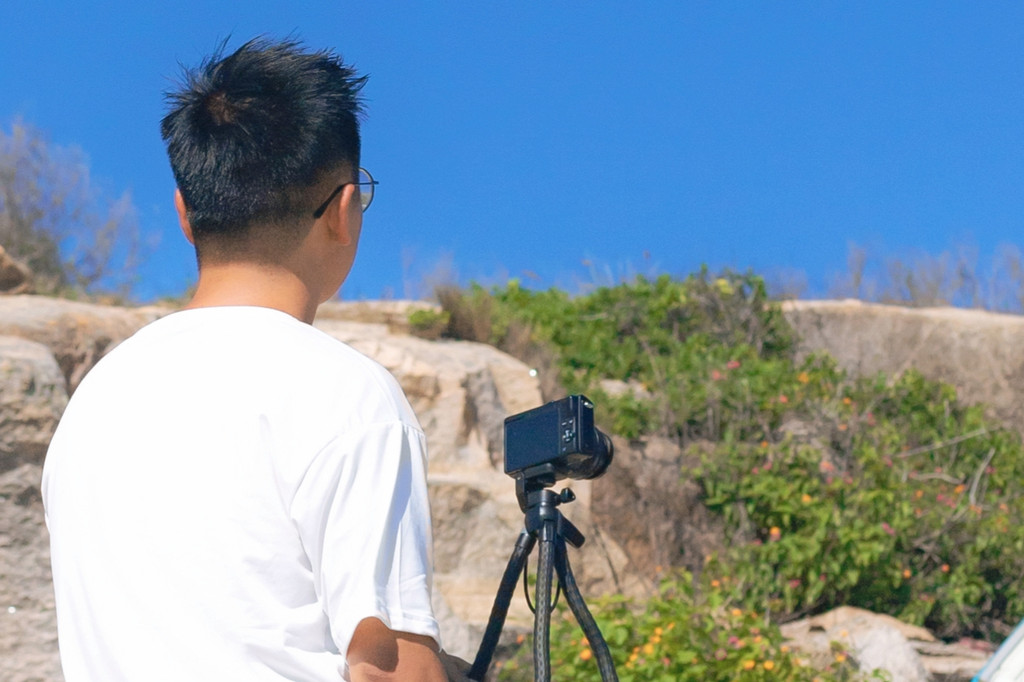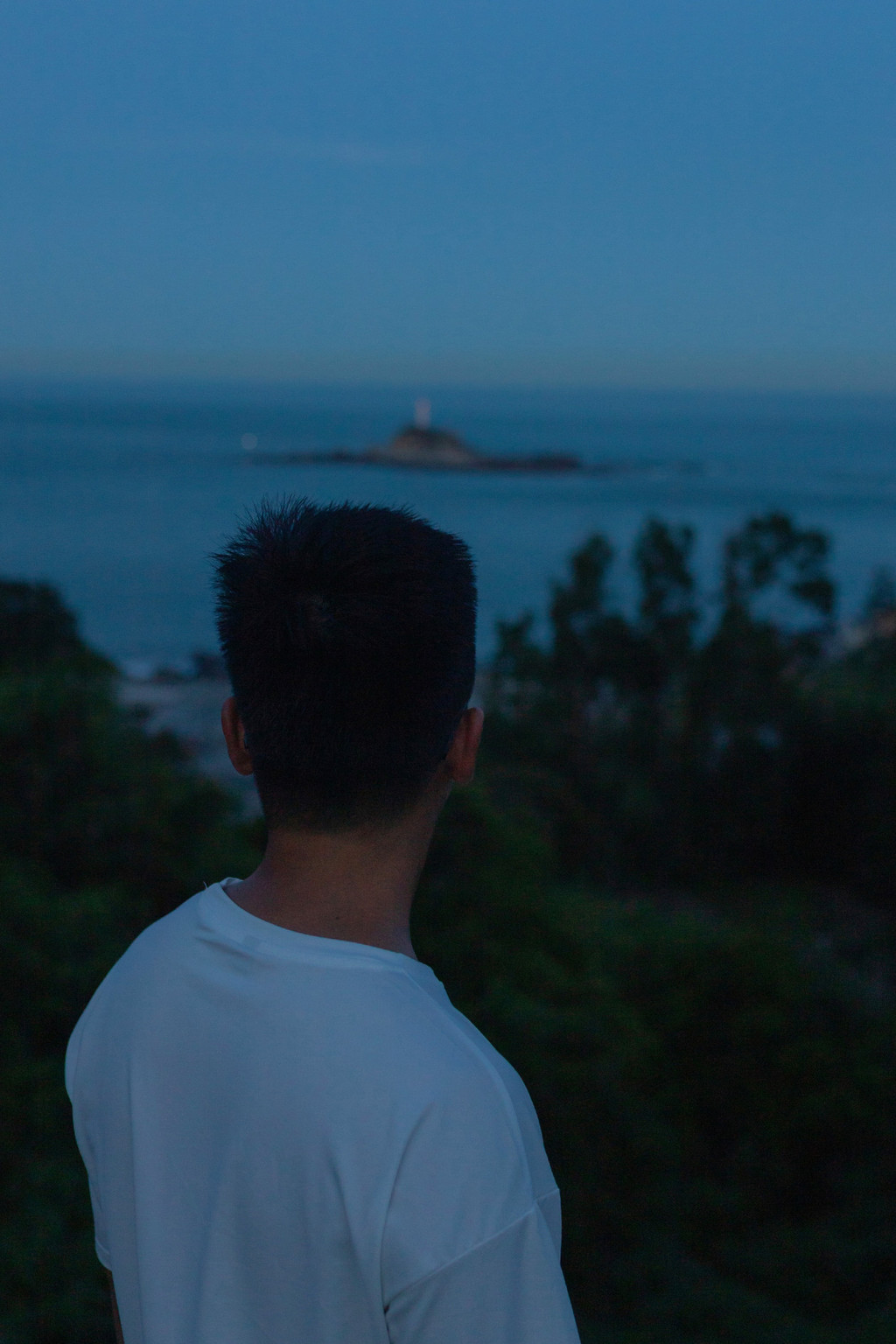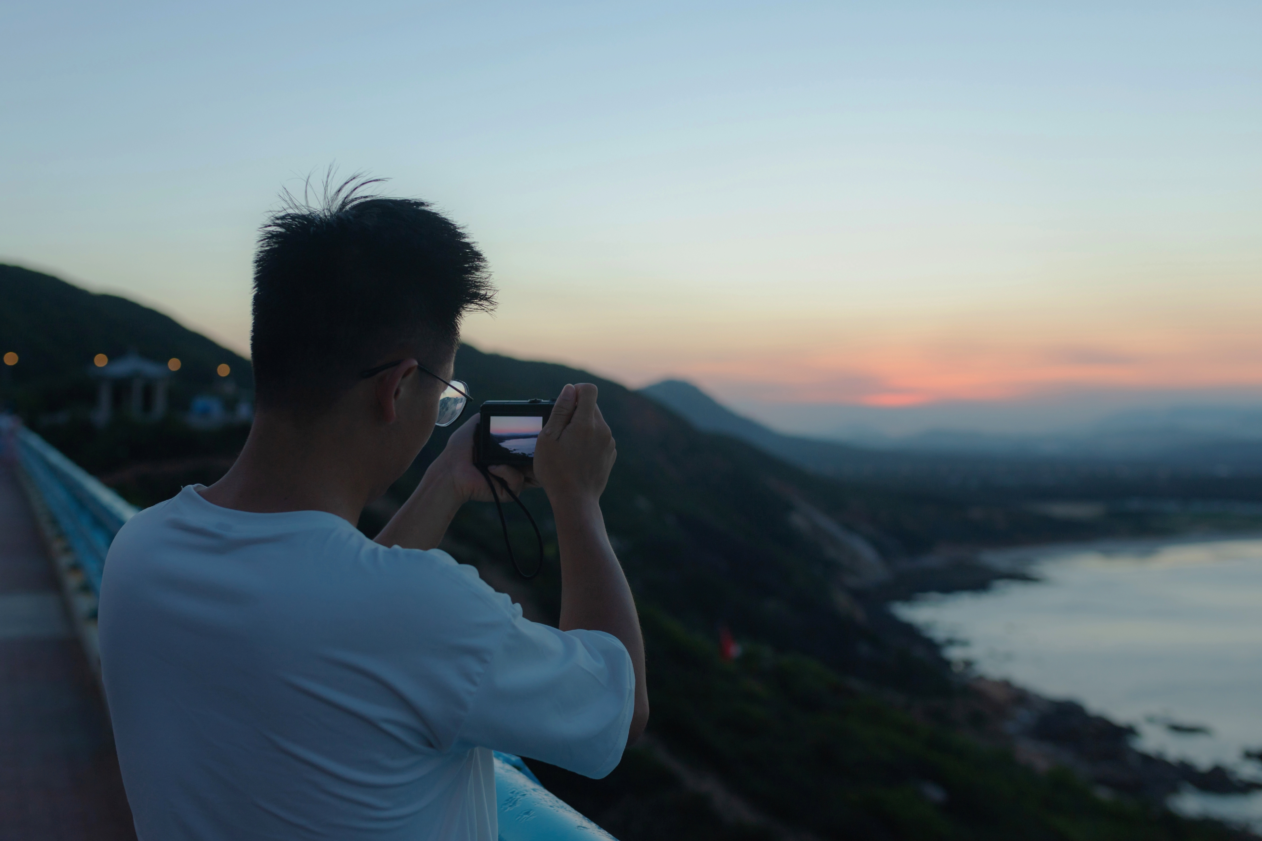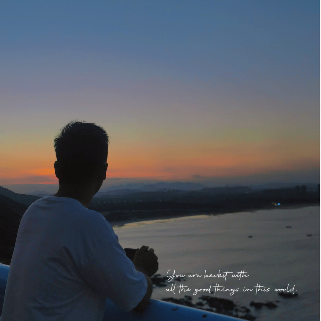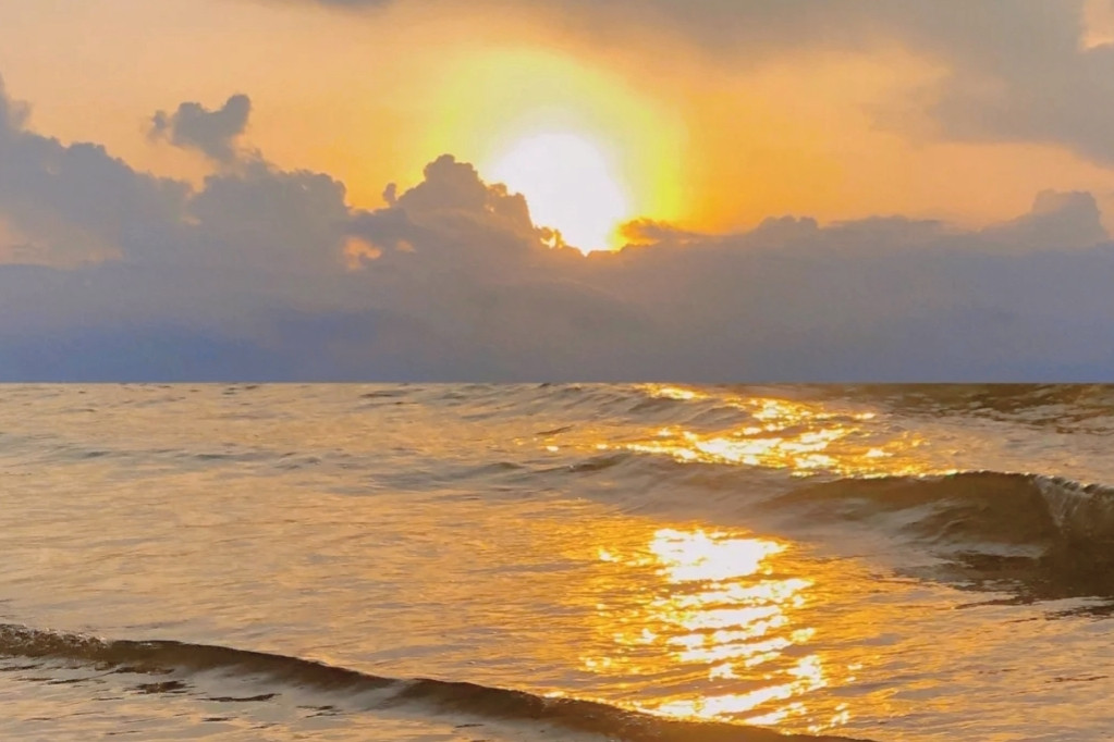 赏山顶云雾低垂,欲抵浪尖。此刻,