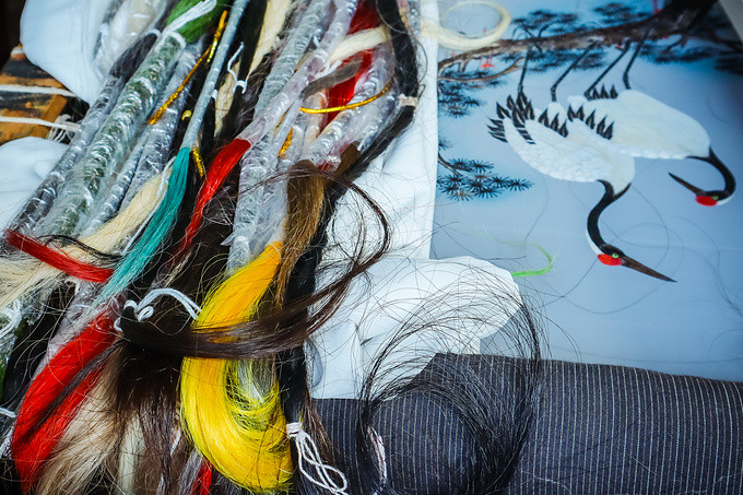 不得不说安丰古镇上的非遗是真的多啊,逛到一家发绣馆,馆内的绣品都是用真头发刺绣而成,让我们了解到了发绣精湛的制作工艺和艺术价值。
